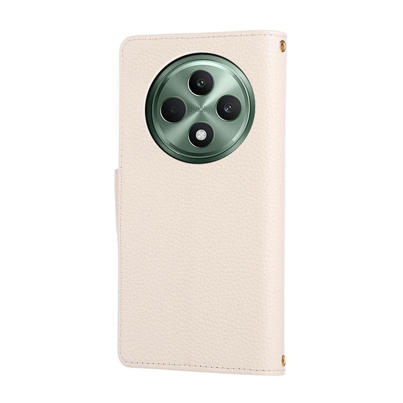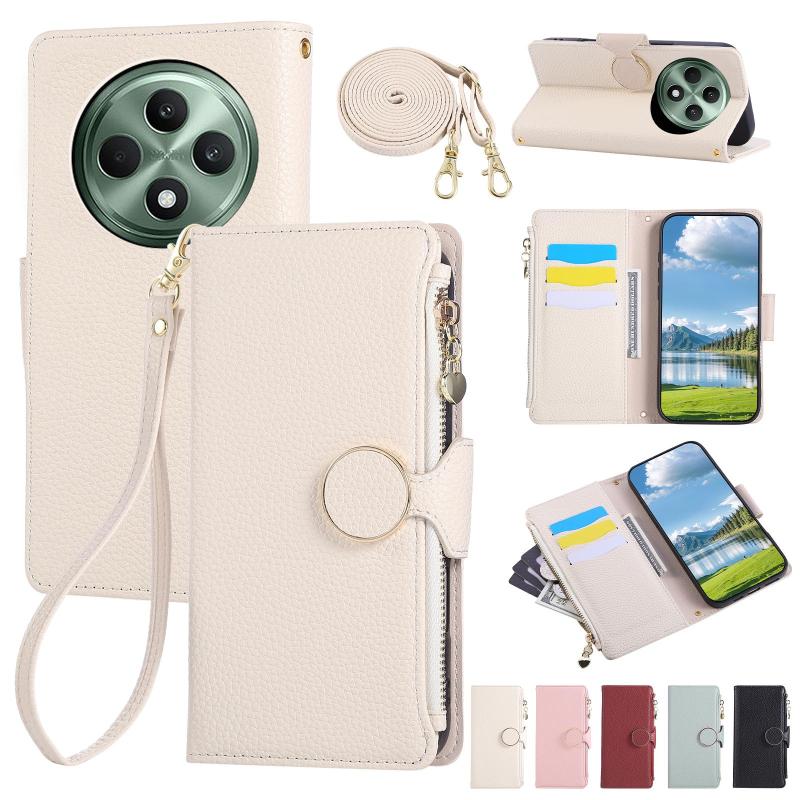 For OPPO Reno12 F Round Buckle Zipper Wallet Leather Phone Case with Crossbody Strap(White)