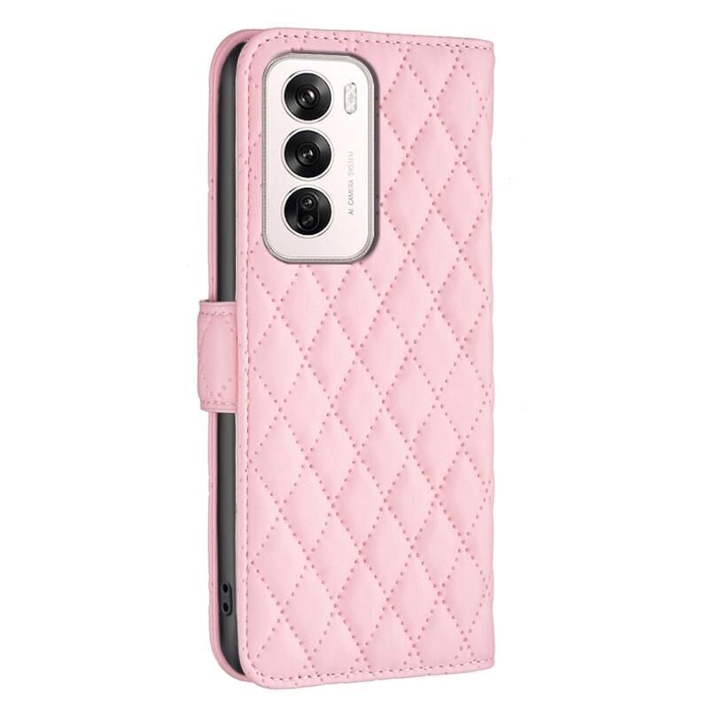 Για OPPO Reno12 Παγκόσμια Diamond Lattice πορτοφόλι δέρμα Flip τηλέφωνο υπόθεση (ρόζ)