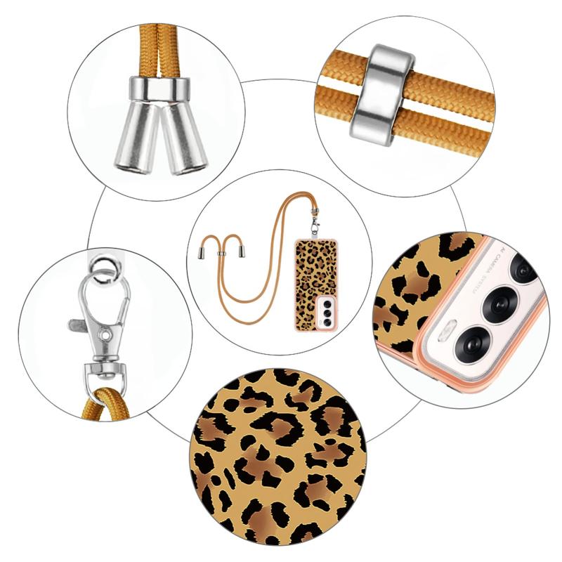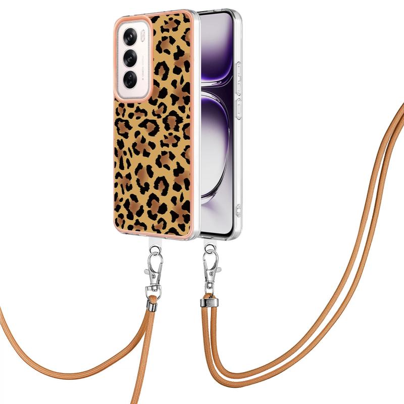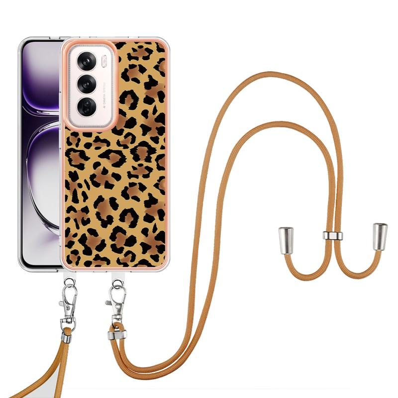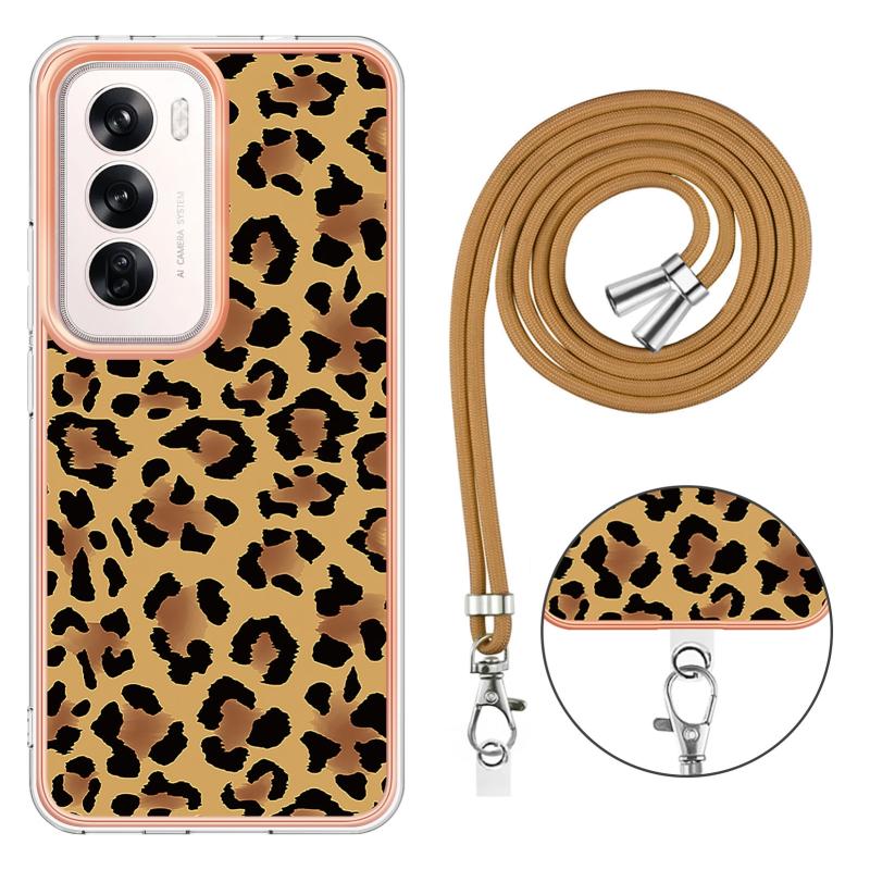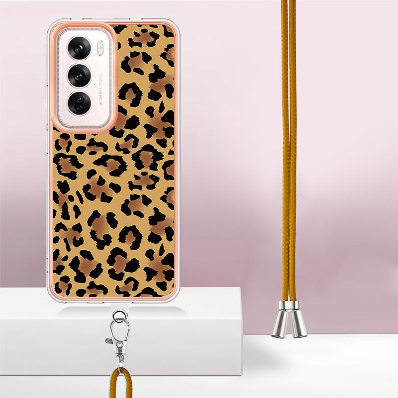 For OPPO Reno12 Global Electroplating Dual-side IMD Phone Case with Lanyard(Leopard Print)