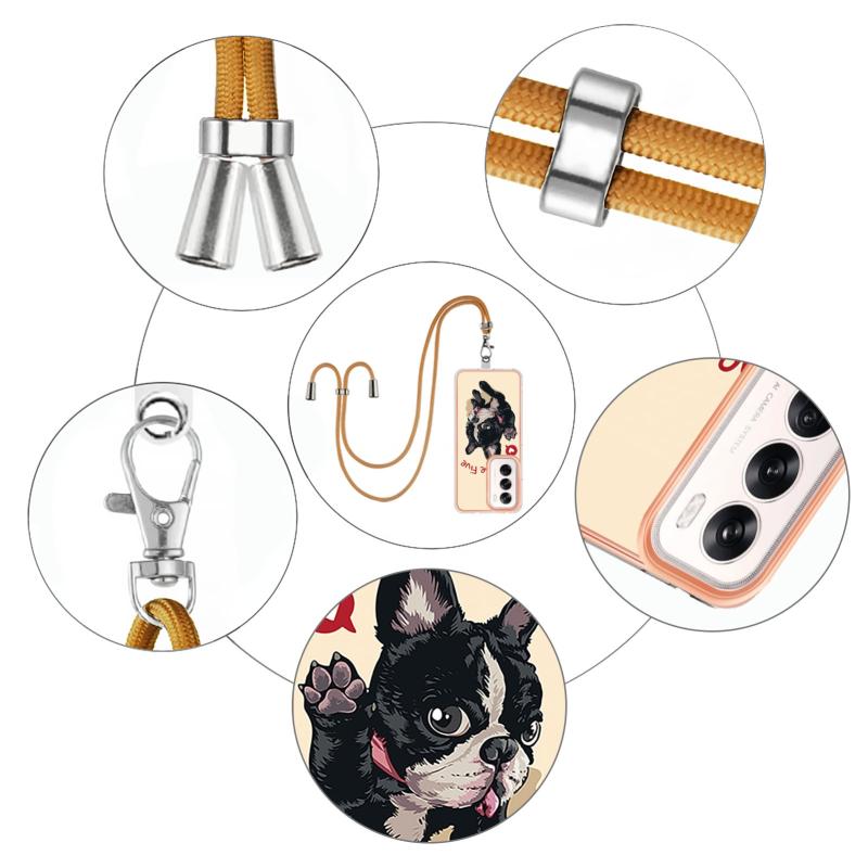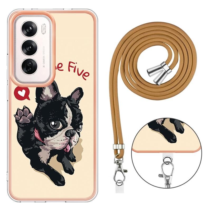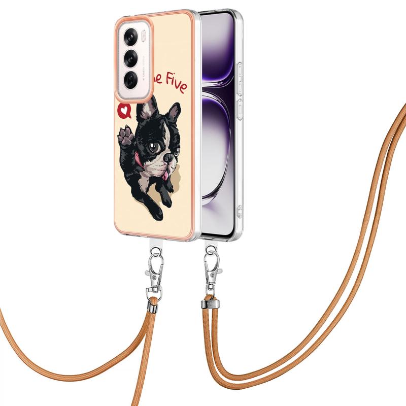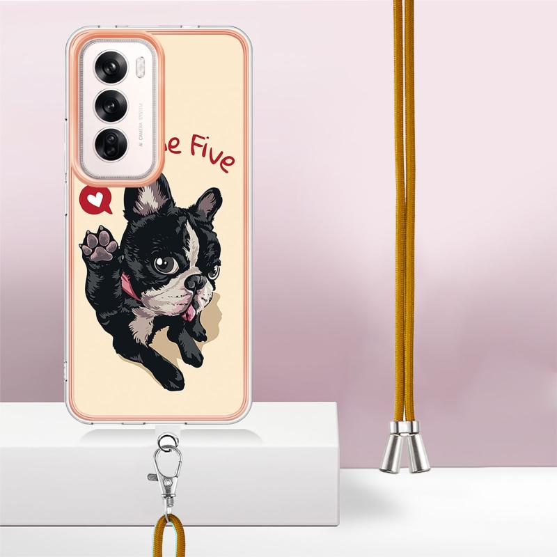 For OPPO Reno12 Global Electroplating Dual-side IMD Phone Case with Lanyard(Lucky Dog)