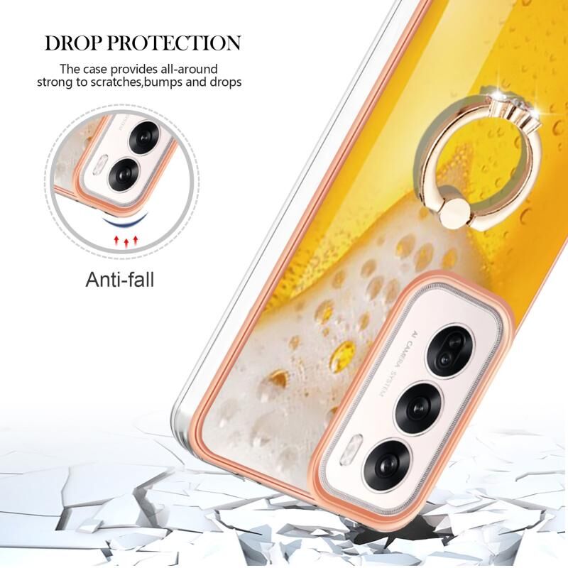 Θήκη τηλεφώνου για OPPO Reno12 Global Electroplating Dual-side IMD με δακτύλιο στήριξης (Draft Beer)