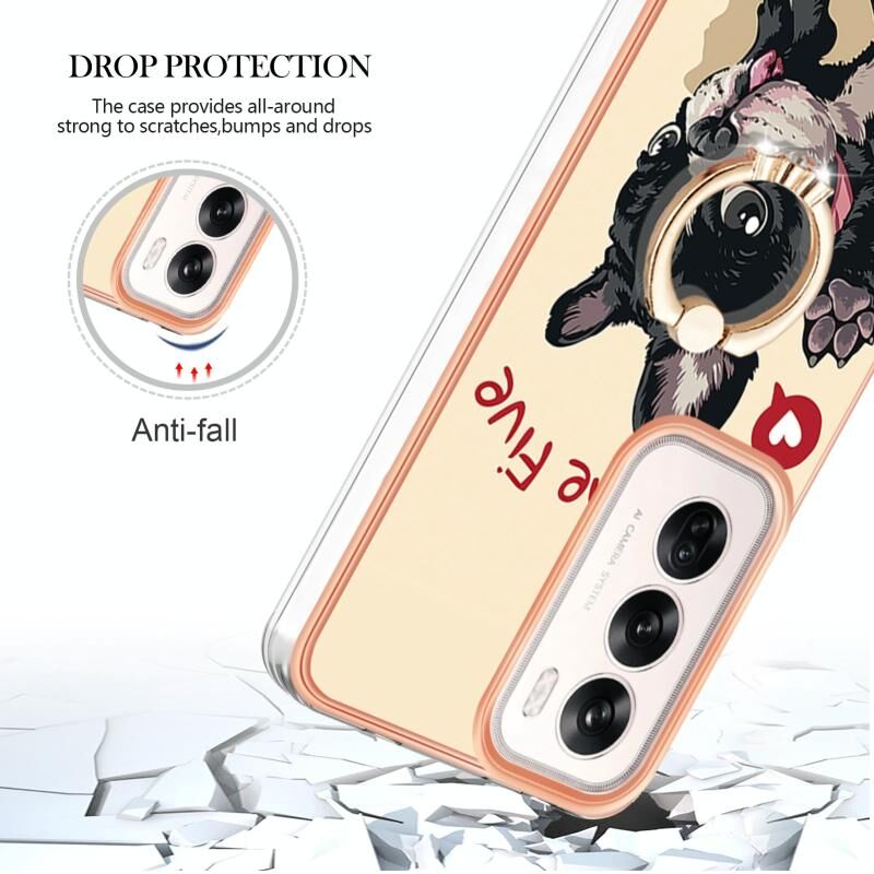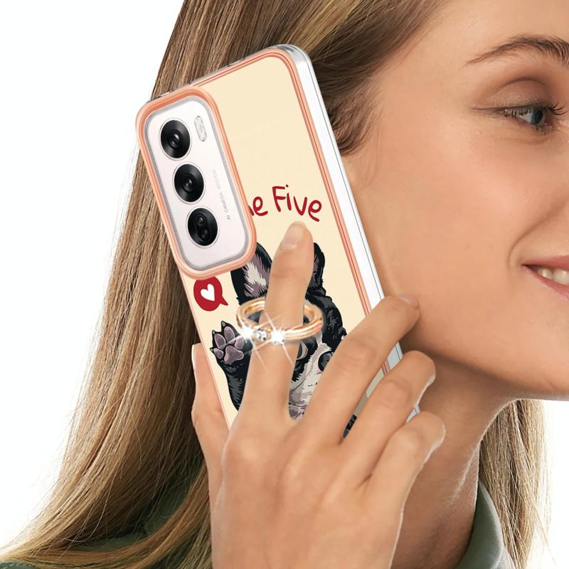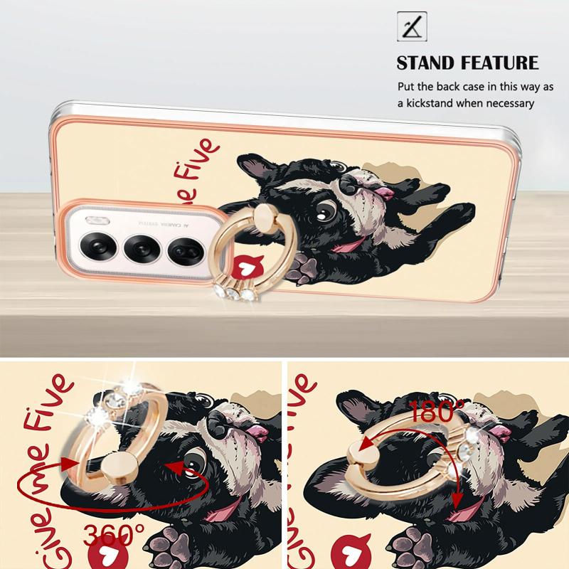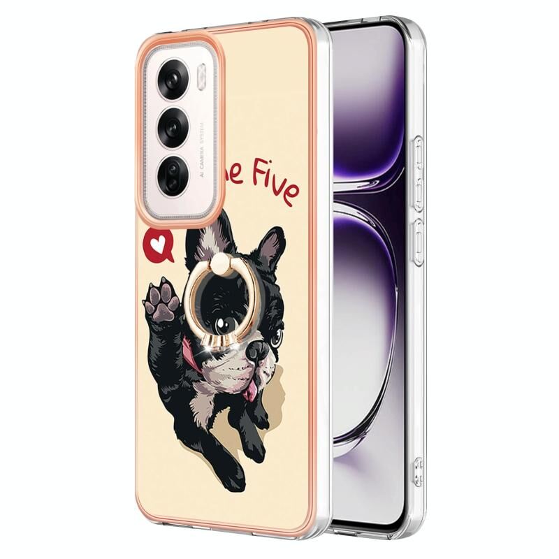Θήκη τηλεφώνου για OPPO Reno12 Global Electroplating Dual-side IMD με δακτύλιο στήριξης (Lucky Dog)