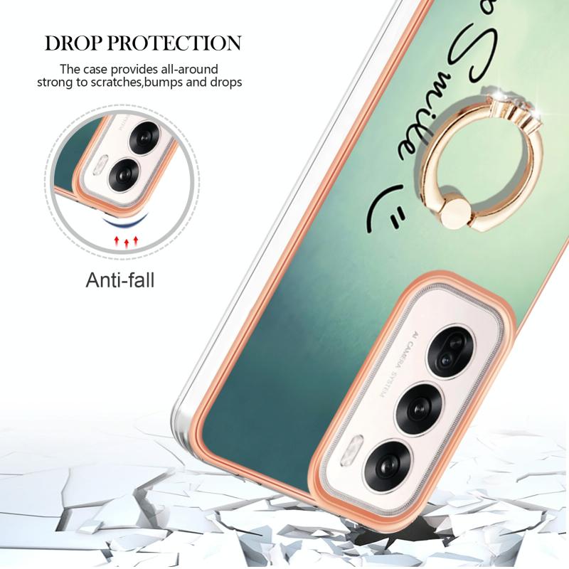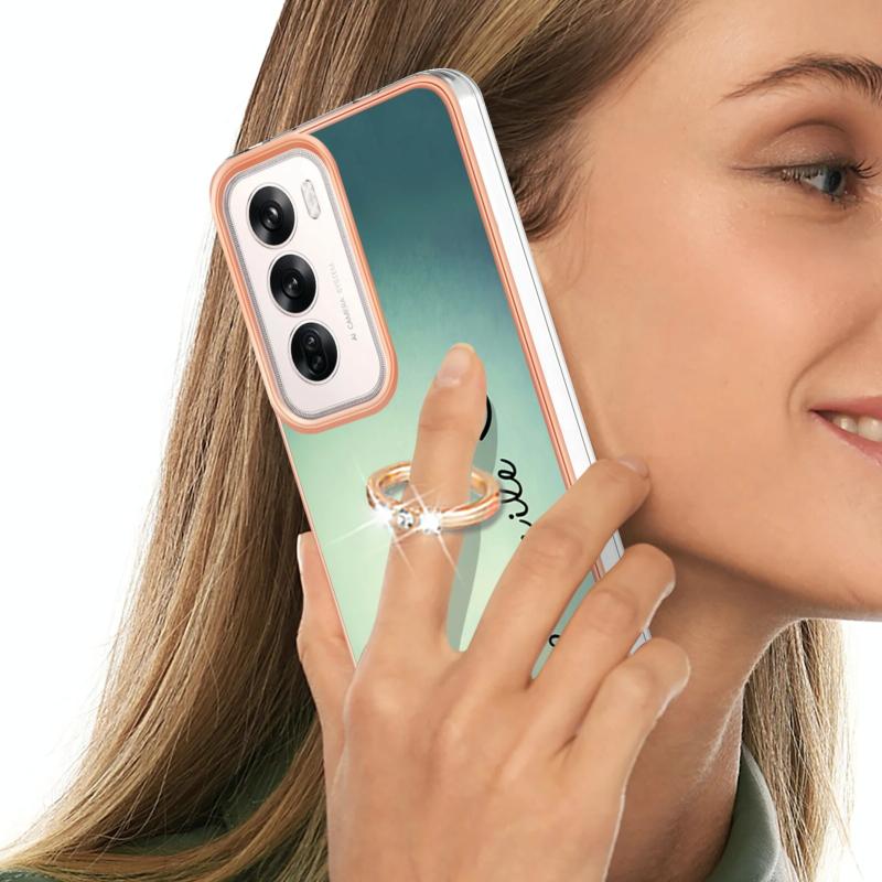Θήκη τηλεφώνου για OPPO Reno12 Global με ηλεκτρολυτική επιμετάλλωση, διπλής όψης IMD με δακτύλιο στήριξης (Χαμόγελο)