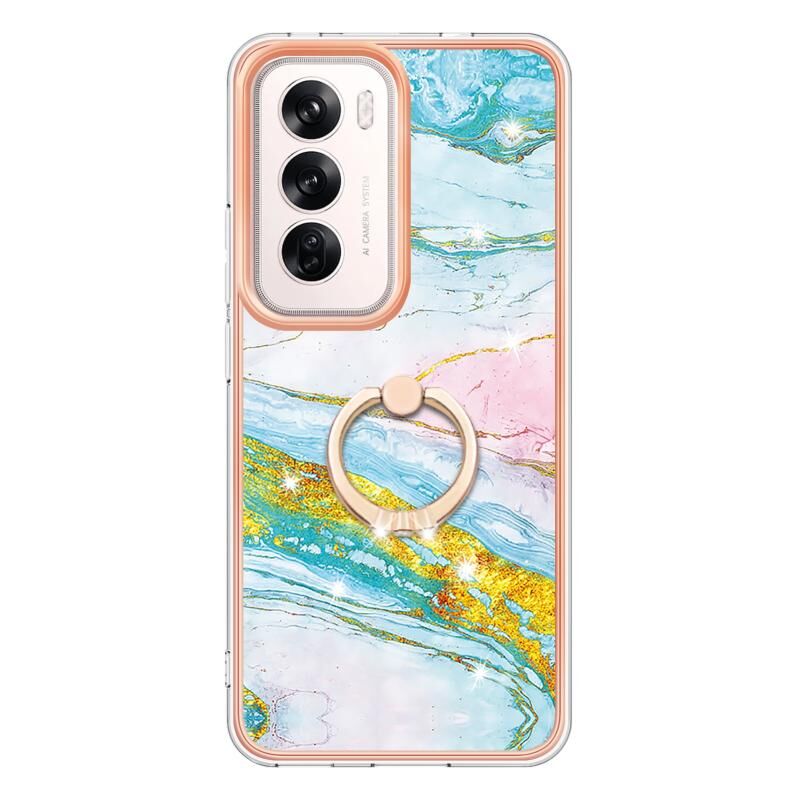 Θήκη τηλεφώνου OPPO Reno12 Global Electroplating Marble IMD TPU με Δακτύλιο Στήριξης (Πράσινο 004)