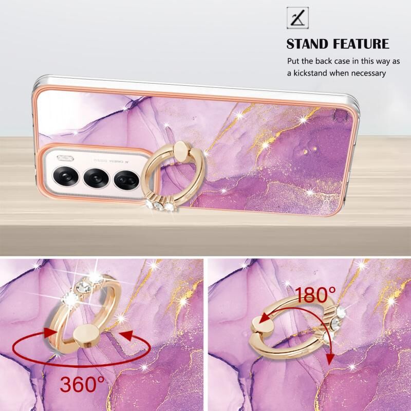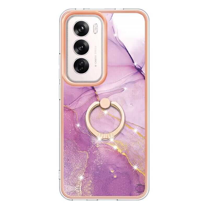 Θήκη τηλεφώνου OPPO Reno12 Global Electroplating Marble IMD TPU με Δακτύλιο Στήριξης (Μωβ 001)