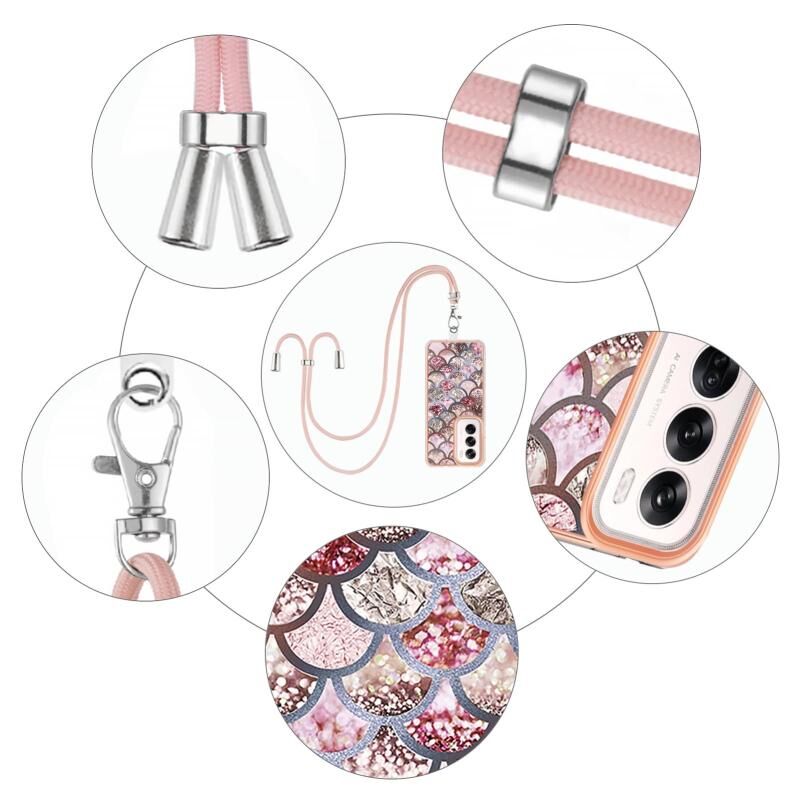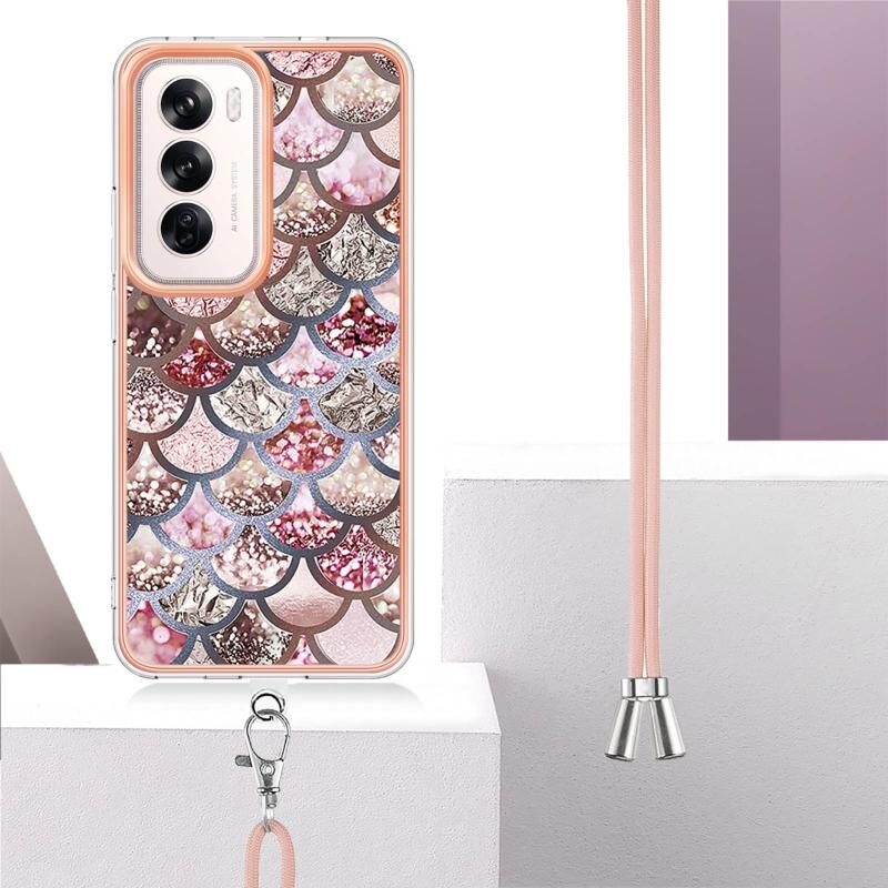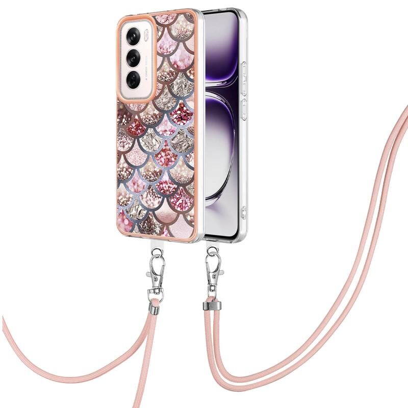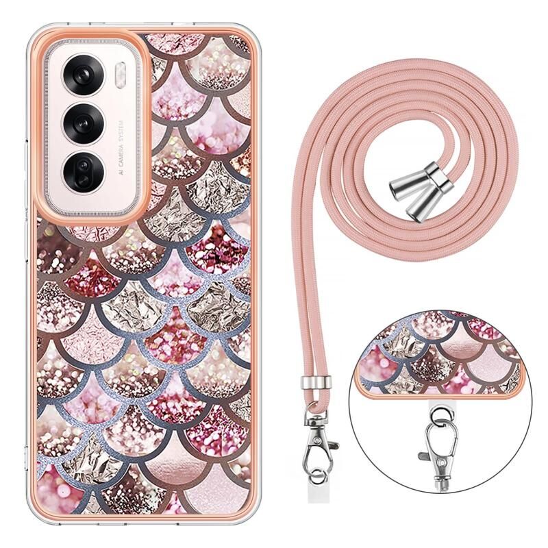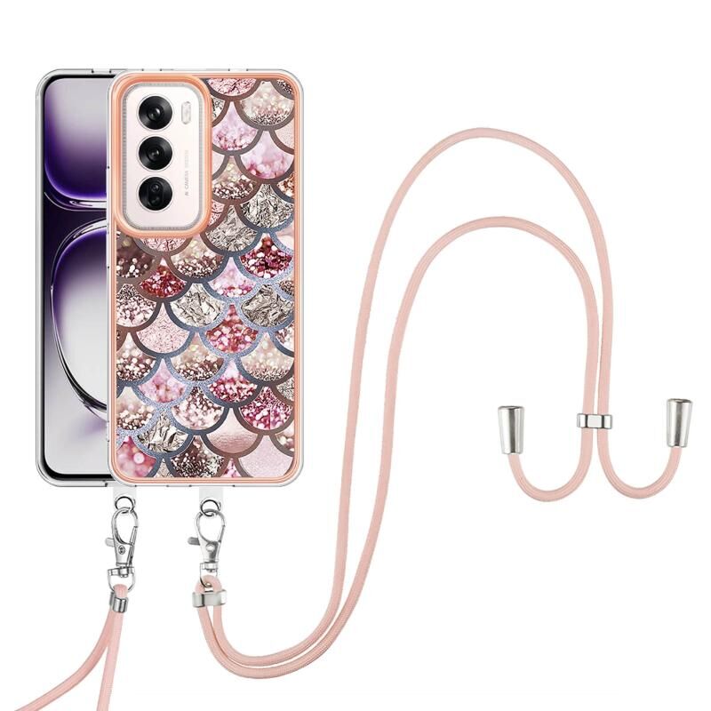 Θήκη προστασίας για OPPO Reno12 Global με σχέδιο ηλεκτρολυτικής επιμετάλλωσης IMD TPU, ανθεκτική σε κρούσεις, με κορδόνι λαιμού (Ροζ Λέπια)