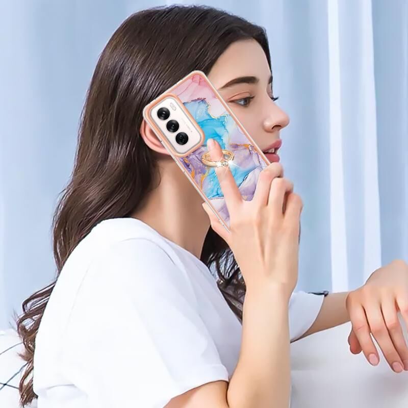 Θήκη προστασίας για OPPO Reno12 Global Electroplating Pattern IMD TPU με αντικραδασμική προστασία και δαχτυλίδι στήριξης με ρητίνες (Ροζ Λέπια)