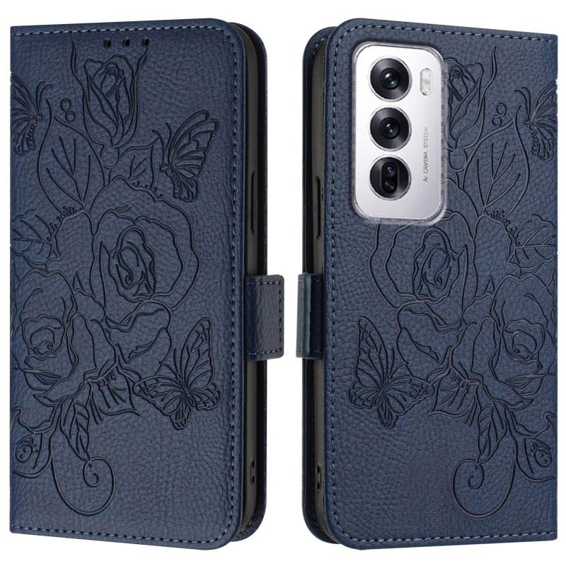 For OPPO Reno12 Global Embossed Rose RFID Anti-theft Leather Phone Case(Dark Blue)