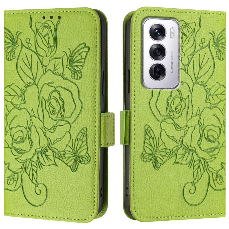For OPPO Reno12 Global Embossed Rose RFID Anti-theft Leather Phone Case(Green)