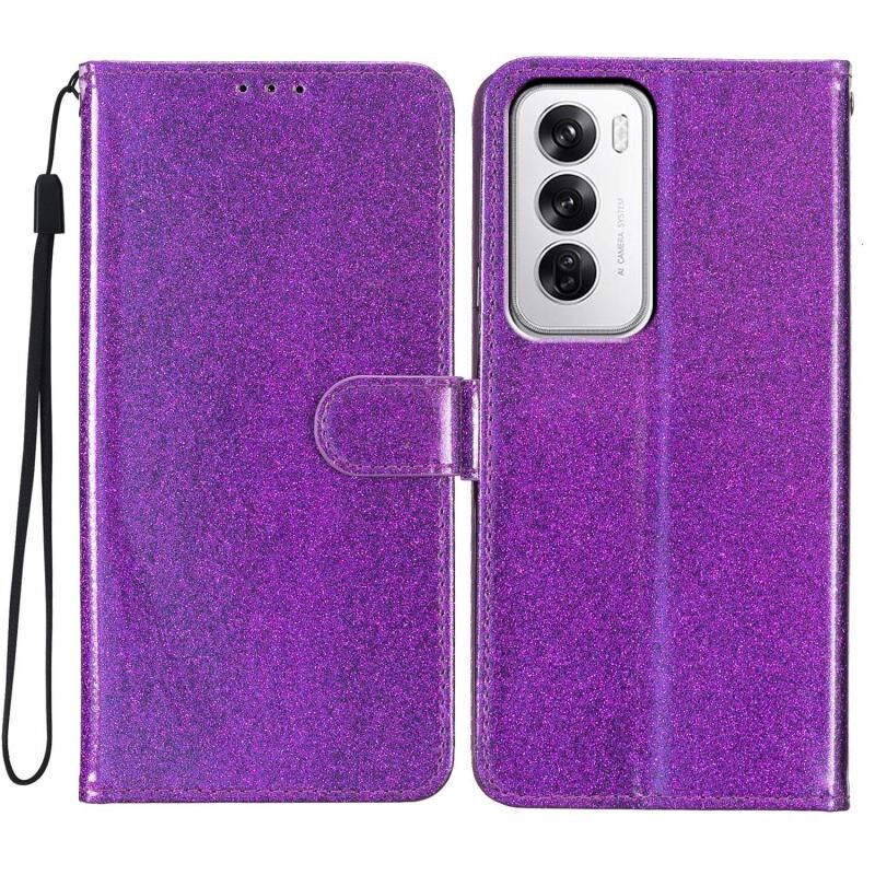 Θήκη τηλεφώνου από δέρμα με γυαλιστερή πούδρα για OPPO Reno12 Global (Μαύρο)