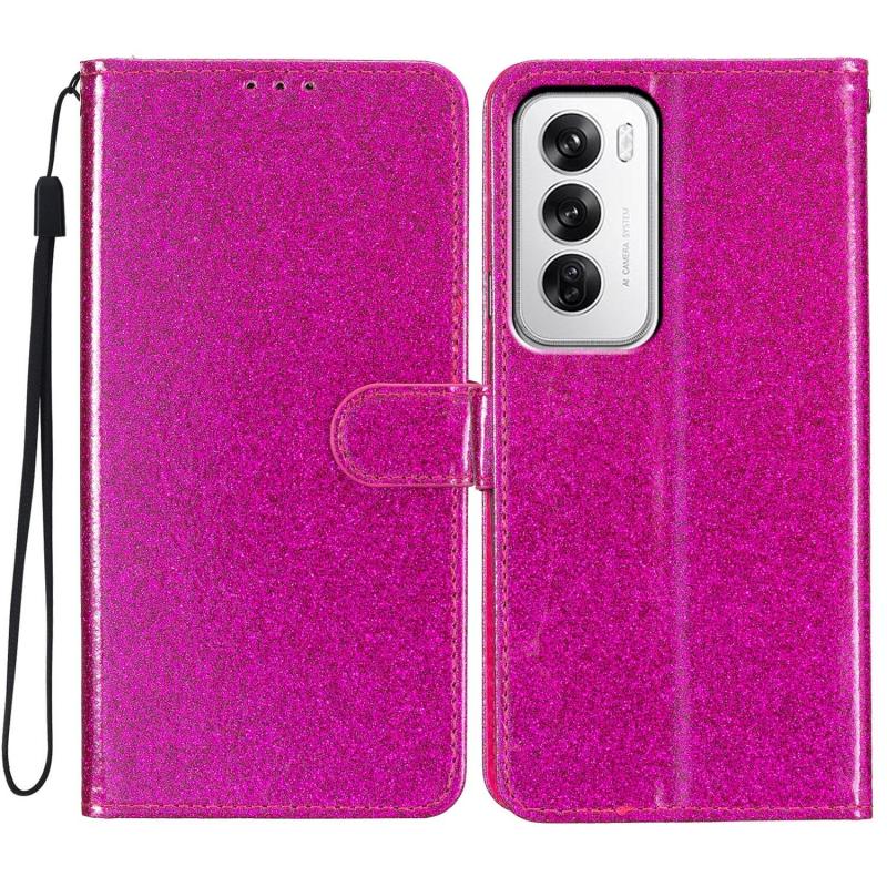 For OPPO Reno12 Global Glitter Powder Flip Leather Phone Case(Rose Red)