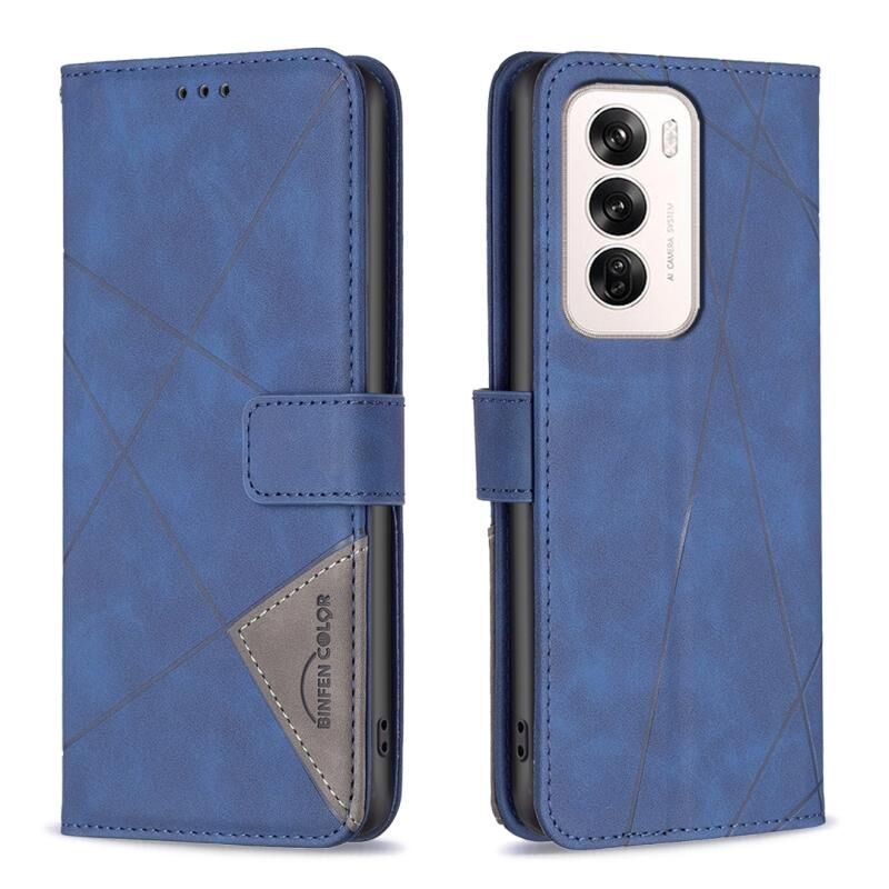 Θήκη τηλεφώνου από δέρμα με υφή ρόμβου και μαγνητικό κούμπωμα για OPPO Reno12 Global (Μπλε)