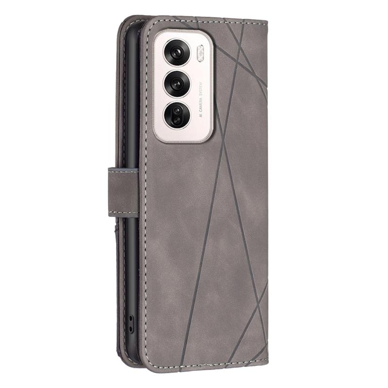 For OPPO Reno12 Global Magnetic Buckle Rhombus Texture Leather Phone Case(Grey)