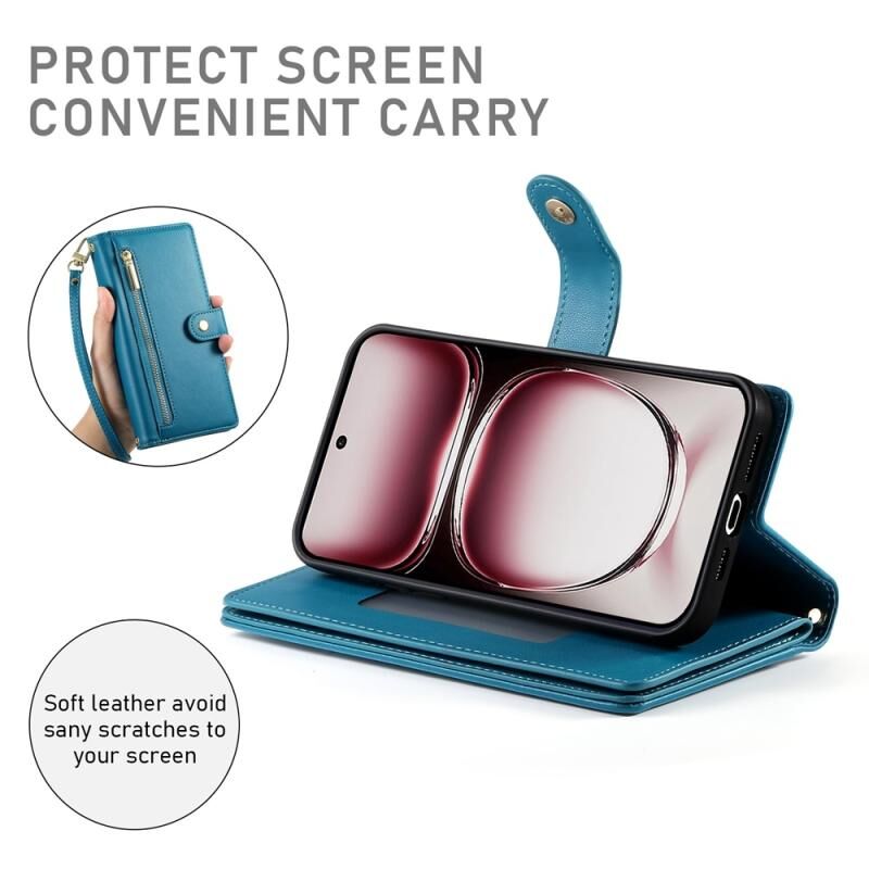 Για OPPO Reno12 Global Nine Card-slot φερμουάρ πορτοφόλι τσάντα δερμάτινη θήκη τηλεφώνου (Μπλε)