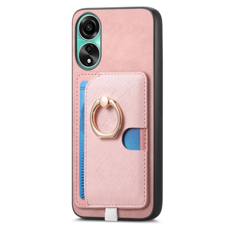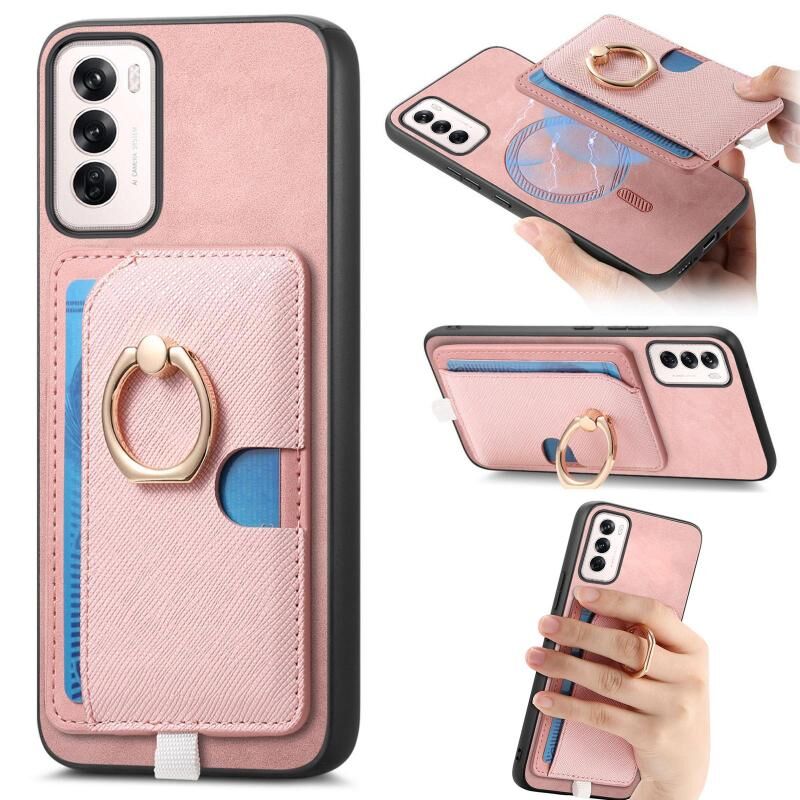 Θήκη τηλεφώνου OPPO Reno12 Global Retro Cross Leather Ring Side Insert Card Bag MagSafe (ρόζ)