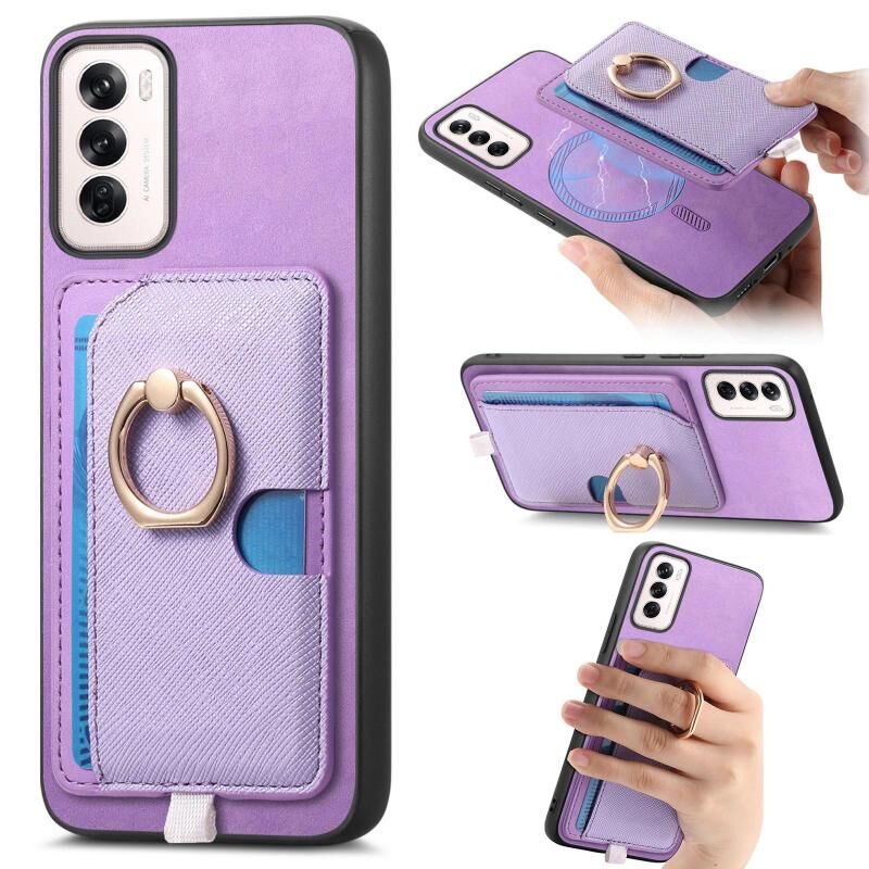 Θήκη τηλεφώνου OPPO Reno12 Global Retro Cross Leather Ring Side Insert Card Bag MagSafe (Μωβ)