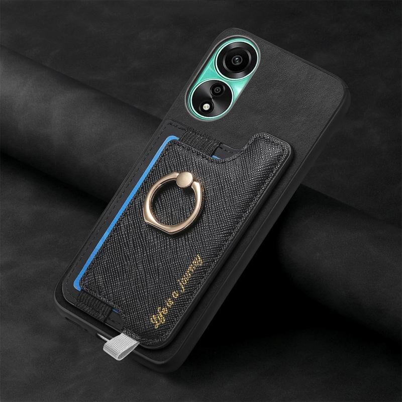 Θήκη τηλεφώνου για OPPO Reno12 Global Retro Magsafe Cross Δερμάτινος Δακτύλιος Κάρτας (Μαύρο)