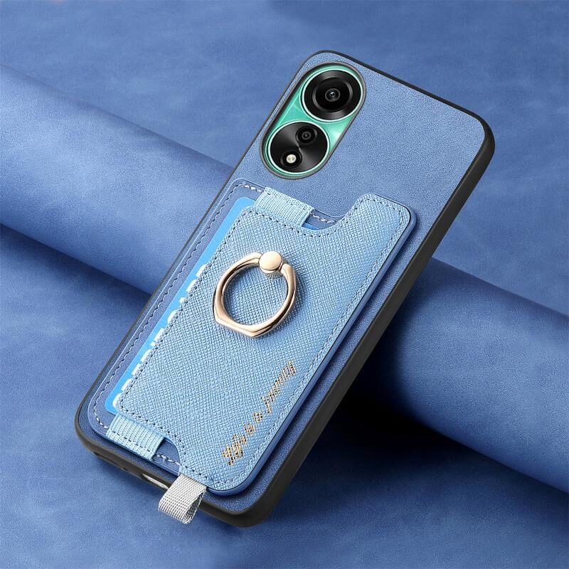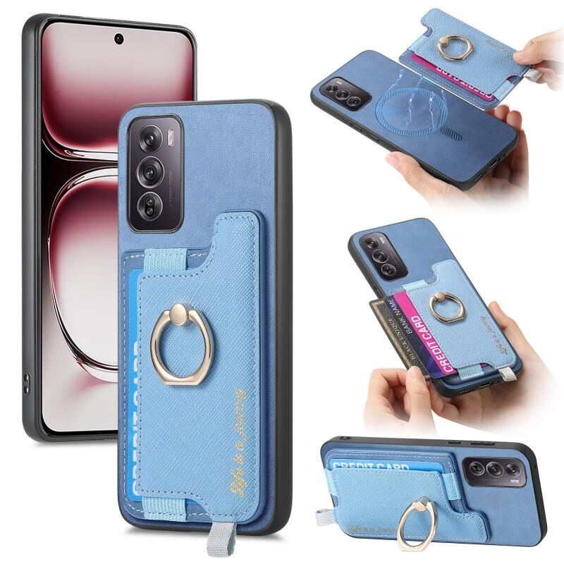 Θήκη τηλεφώνου για OPPO Reno12 Global Retro Magsafe Cross Δερμάτινος Δακτύλιος Κάρτας (Μπλε)
