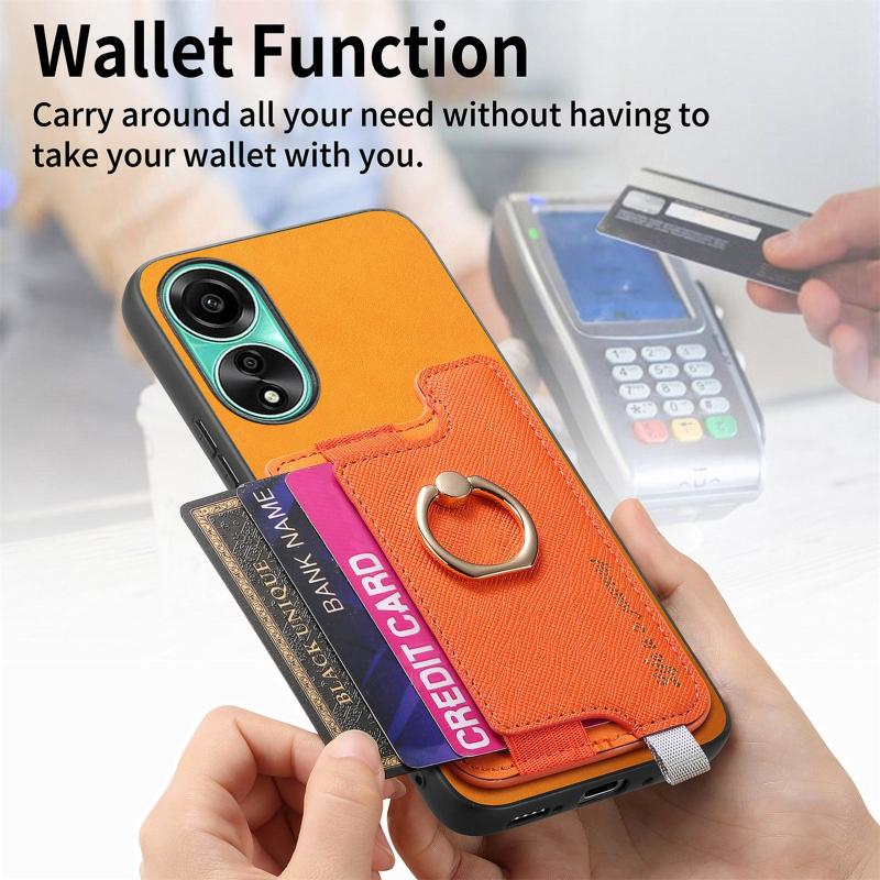For OPPO Reno12 Global Retro Magsafe Cross Leather Ring Holder Card Bag Phone Case(Yellow)