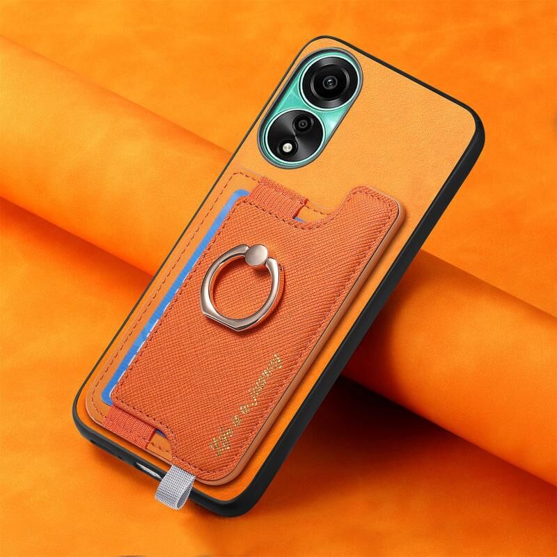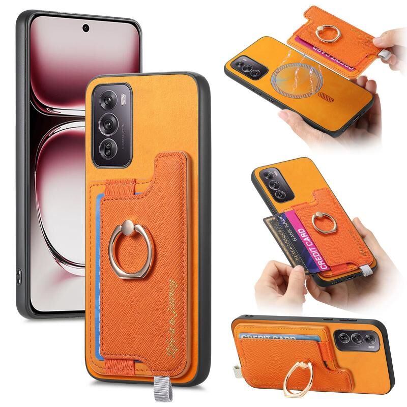 Θήκη τηλεφώνου για OPPO Reno12 Global Retro Magsafe Cross Δερμάτινος Δακτύλιος Κάρτας (Κίτρινο)