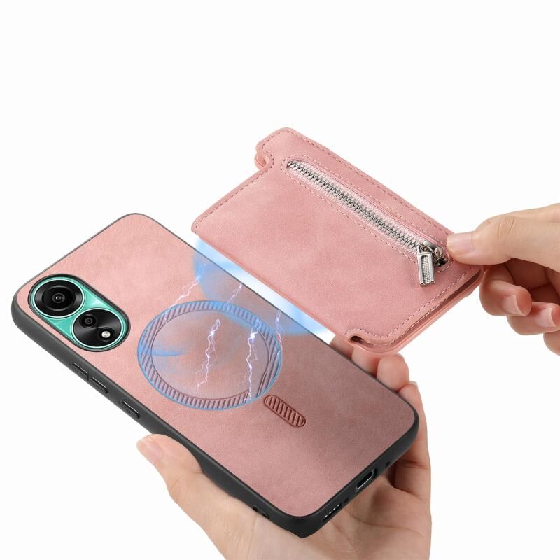 Θήκη κινητού τηλεφώνου για OPPO Reno12 Global Retro MagSafe με θήκη κάρτας και φερμουάρ (Κίτρινο)