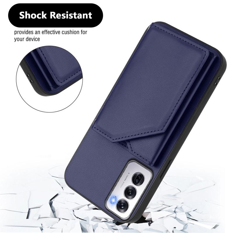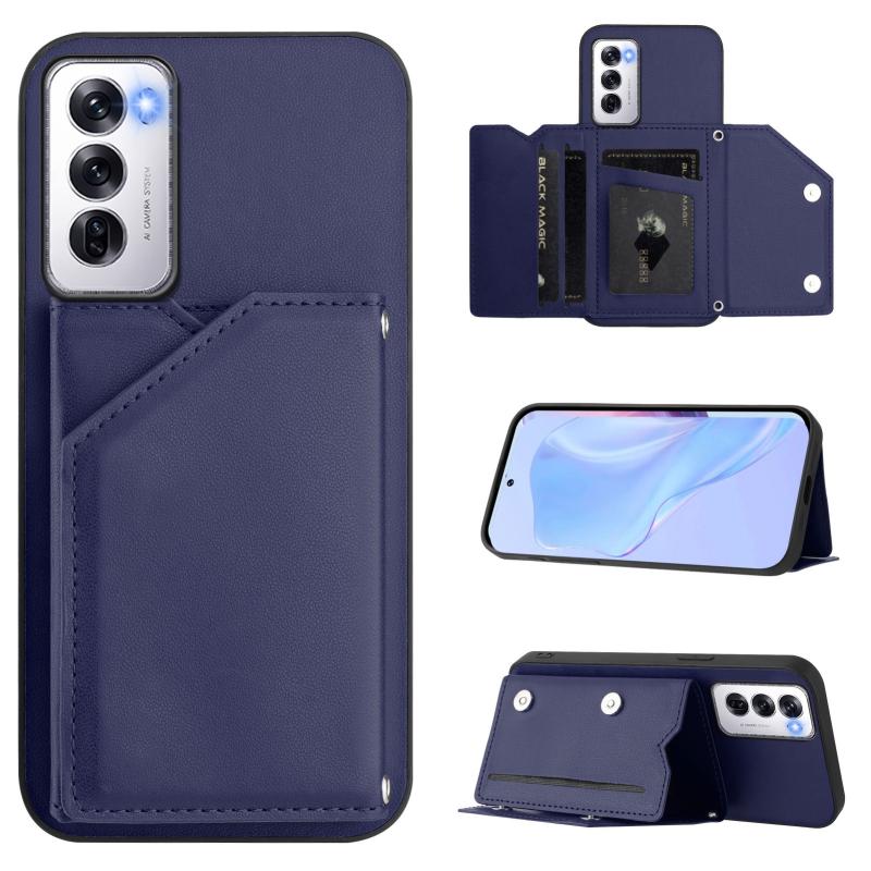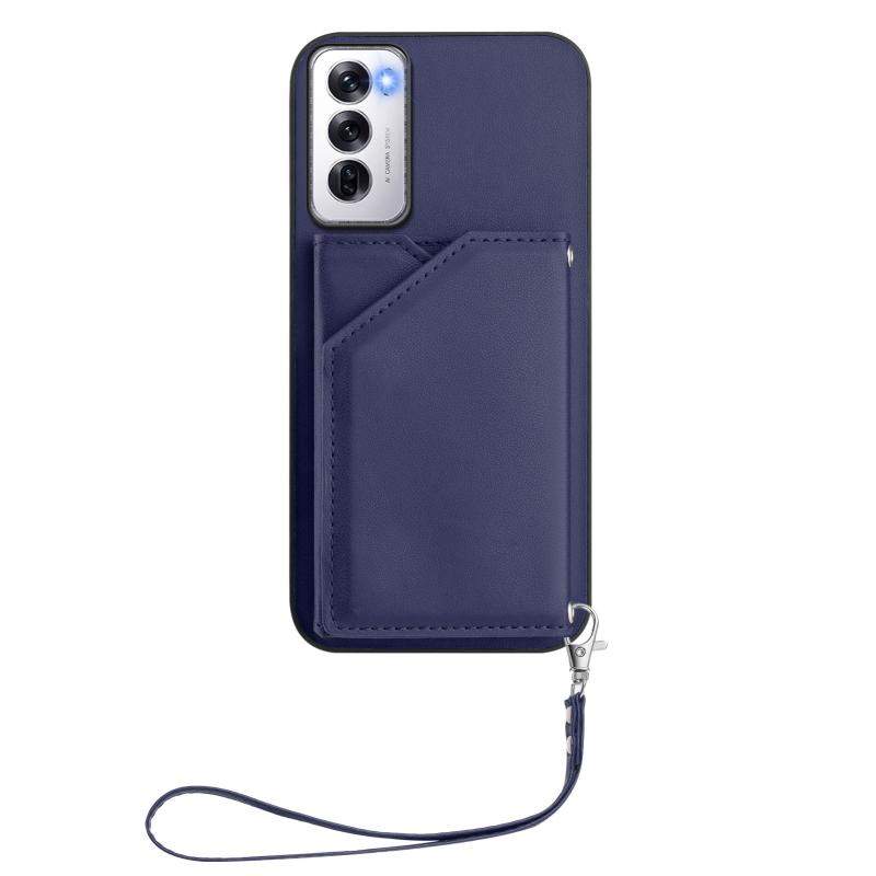 For OPPO Reno12 Global Skin Feel Four Card Slots Phone Case with Wrist Strap(Blue)
