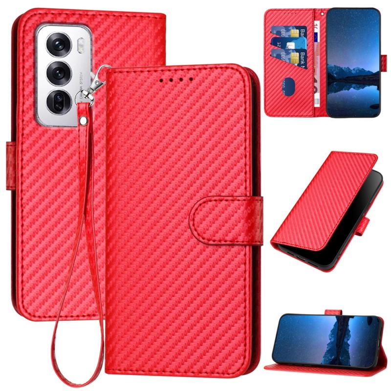 For OPPO Reno12 Global YX0070 Carbon Fiber Buckle Leather Phone Case with Lanyard(Red)