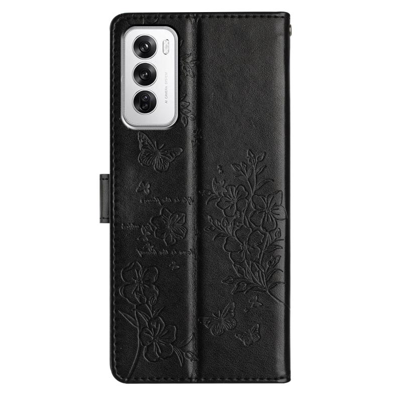 For OPPO Reno12 Pro 5G Global Butterflies and Flowers Leather Phone Case(Black)