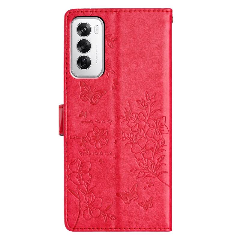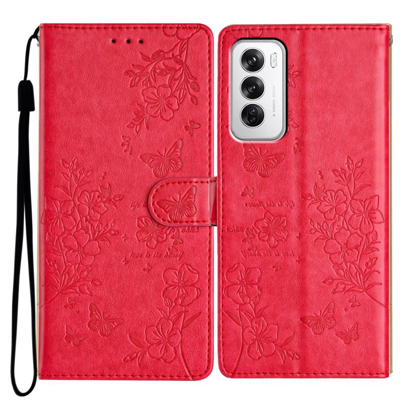 For OPPO Reno12 Pro 5G Global Butterflies and Flowers Leather Phone Case(Red)