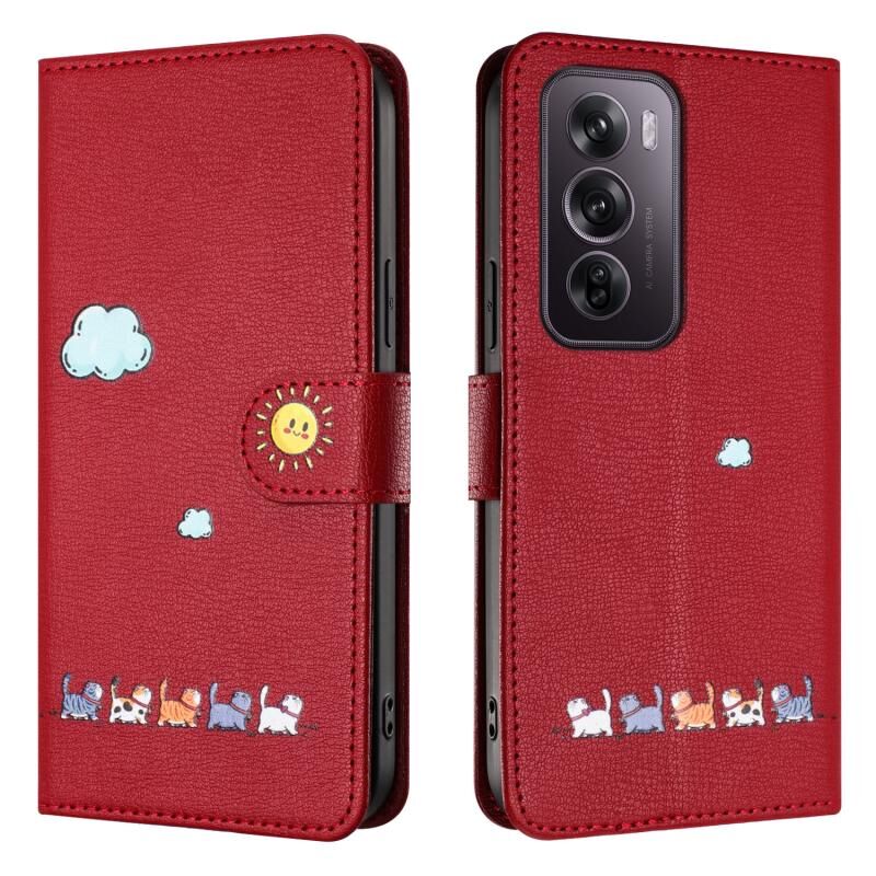 Θήκη τηλεφώνου από δέρμα με σχέδια καρτούν για OPPO Reno12 Pro 5G (Κόκκινο)