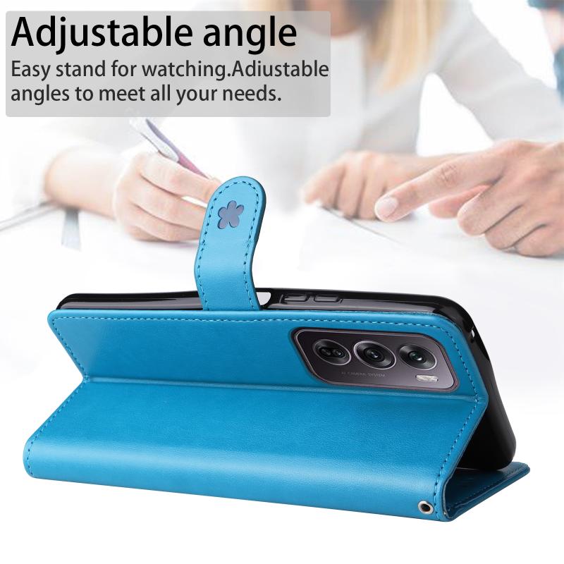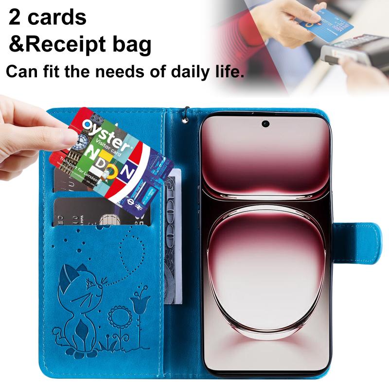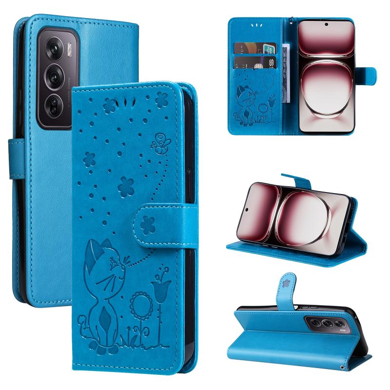 For OPPO Reno12 Pro 5G Global Cat and Bee Embossed Flip Leather Phone Case(Blue)