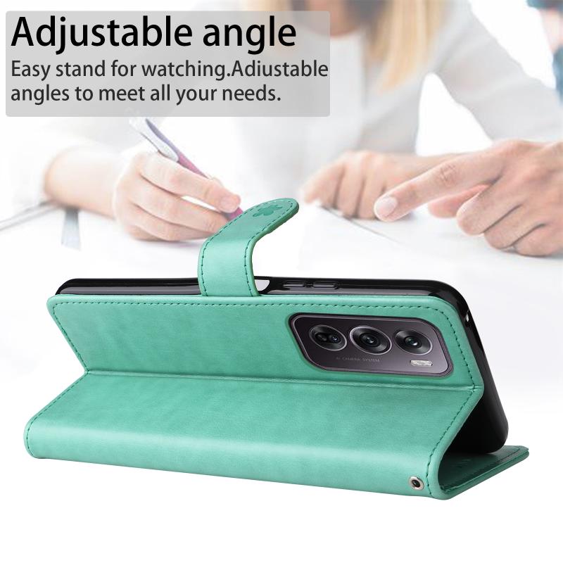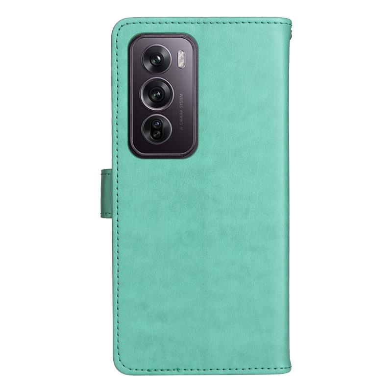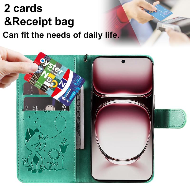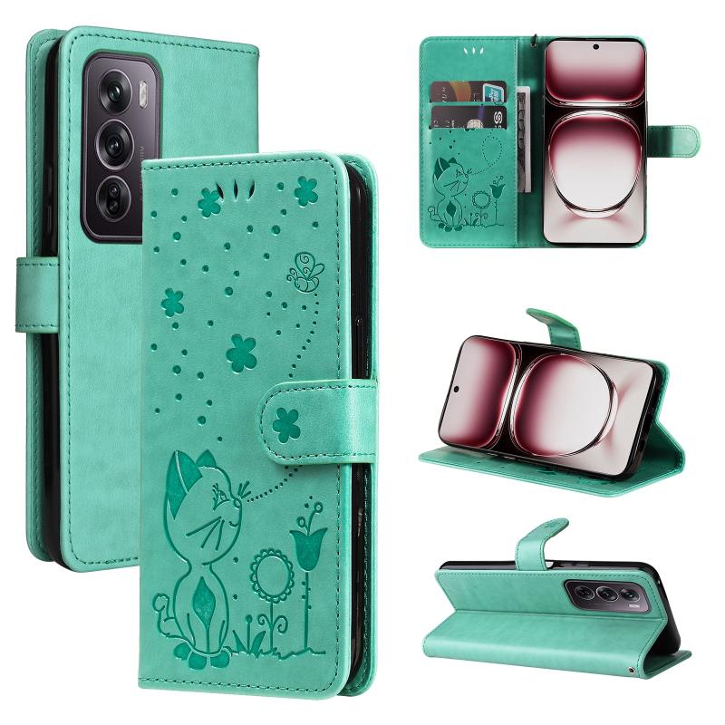 For OPPO Reno12 Pro 5G Global Cat and Bee Embossed Flip Leather Phone Case(Green)