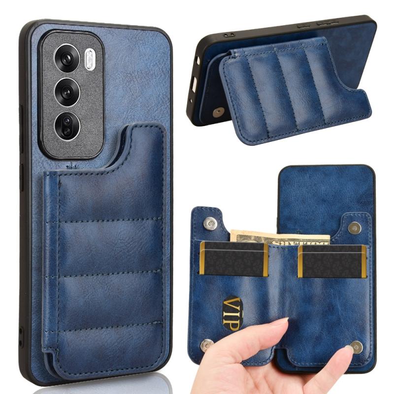 For OPPO Reno12 Pro 5G Global Cow Pattern Sewing Card Bag Phone Case(Blue)