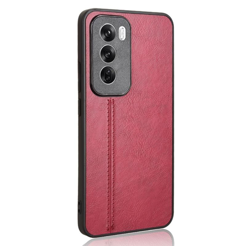 For OPPO Reno12 Pro 5G Global Cow Pattern Sewing Card Bag Phone Case(Red)