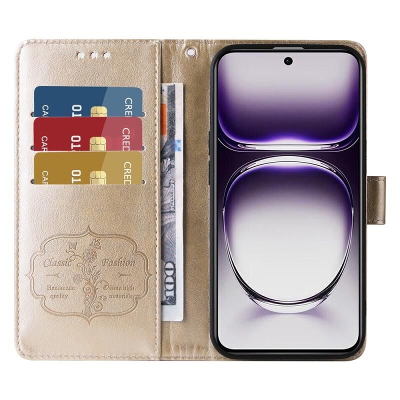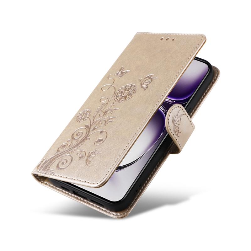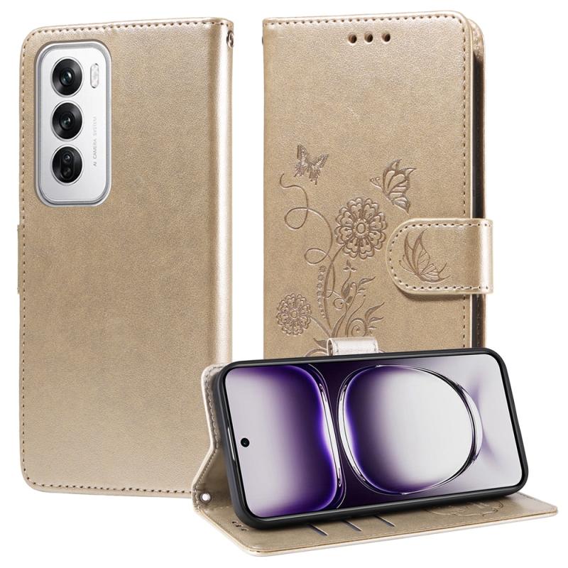 For OPPO Reno12 Pro 5G Global Embossed Butterfly Flowers Leather Phone Case(Gold)