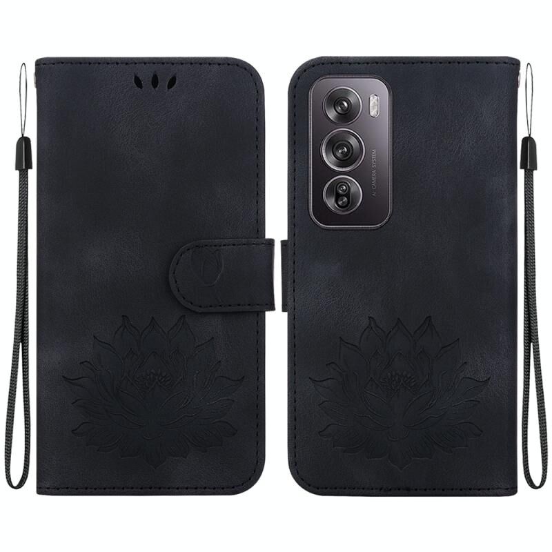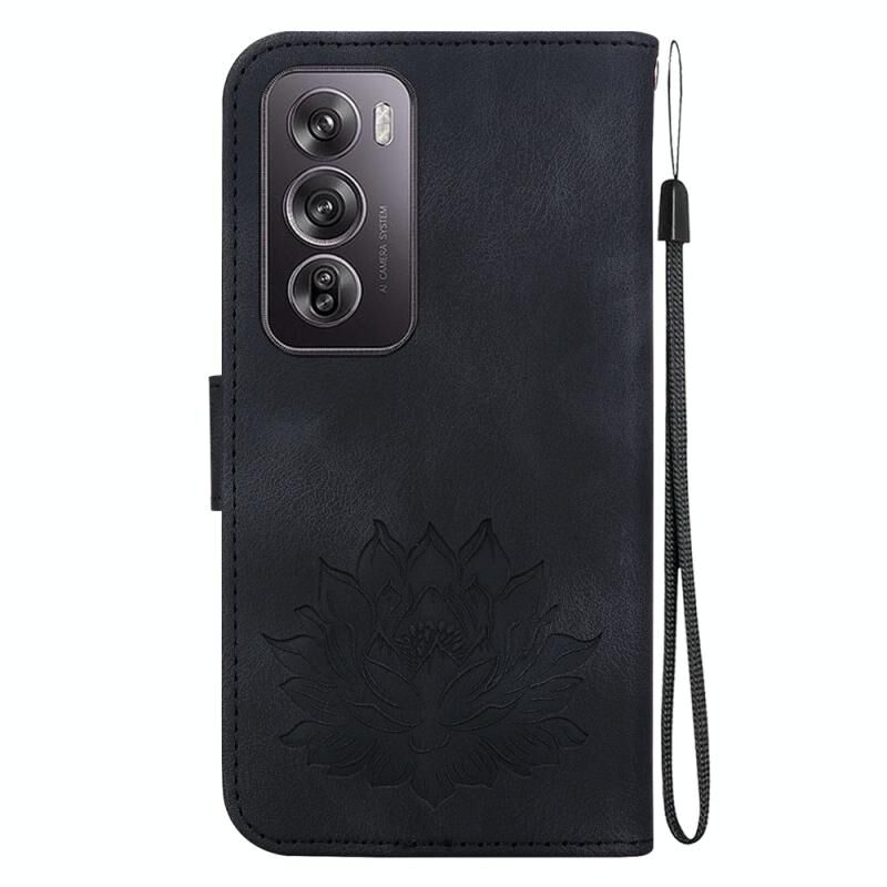 For OPPO Reno12 Pro 5G Global Lotus Embossed Leather Phone Case(Black)