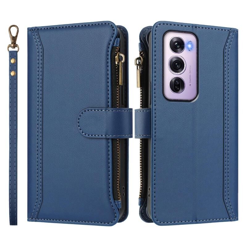 Για OPPO Reno12 Pro 5G Global Μαγνητικό Κλείσιμο 9 Θήκες Κάρτας Δερμάτινη Θήκη με Φερμουάρ και Λουρί Χεριού (Σκούρο Μπλε)