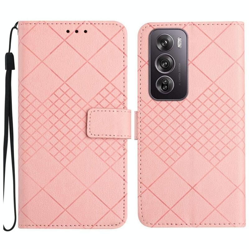 Για OPPO Reno12 Pro 5G Global Rhombic Grid Υφή δερμάτινη θήκη τηλεφώνου (ροζ)