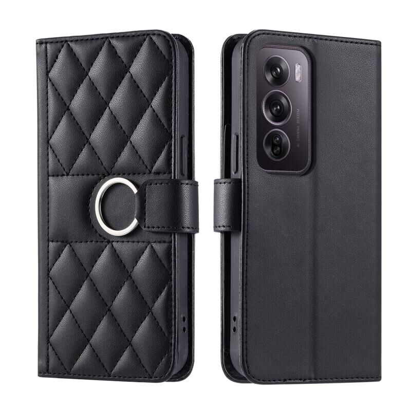 Θήκη τηλεφώνου από δέρμα με γεωμετρικό σχέδιο και μεταλλικό δακτύλιο για OPPO Reno12 Pro 5G (Μαύρο)