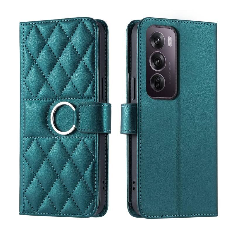 Θήκη τηλεφώνου από δέρμα με γεωμετρικό σχέδιο και μεταλλικό δακτύλιο για OPPO Reno12 Pro 5G (πράσινο)
