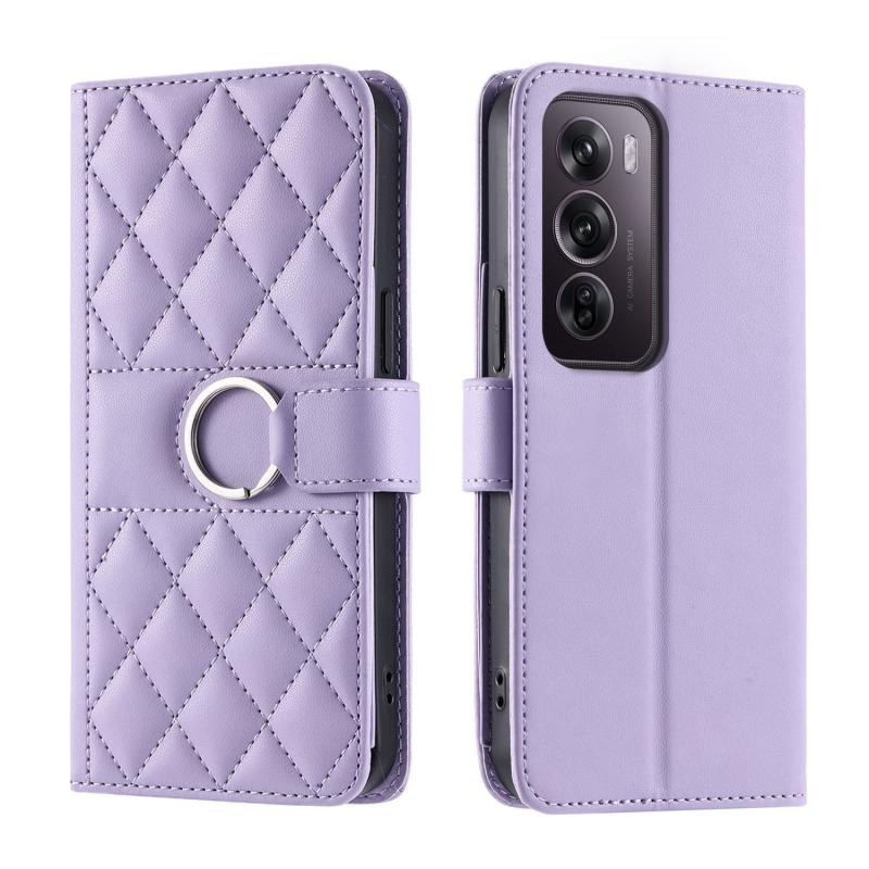 For OPPO Reno12 Pro 5G Global Ring Buckle Rhombic Leather Phone Case(Purple)