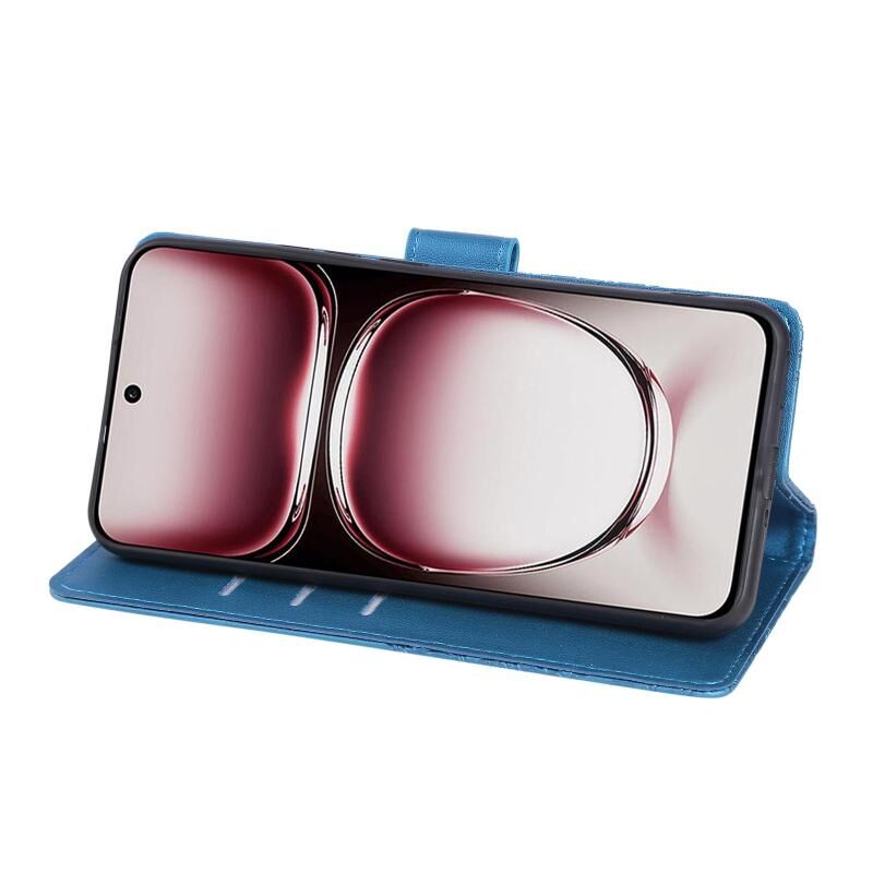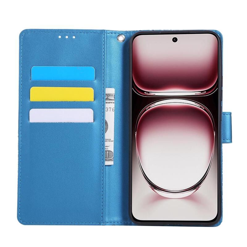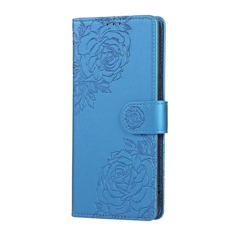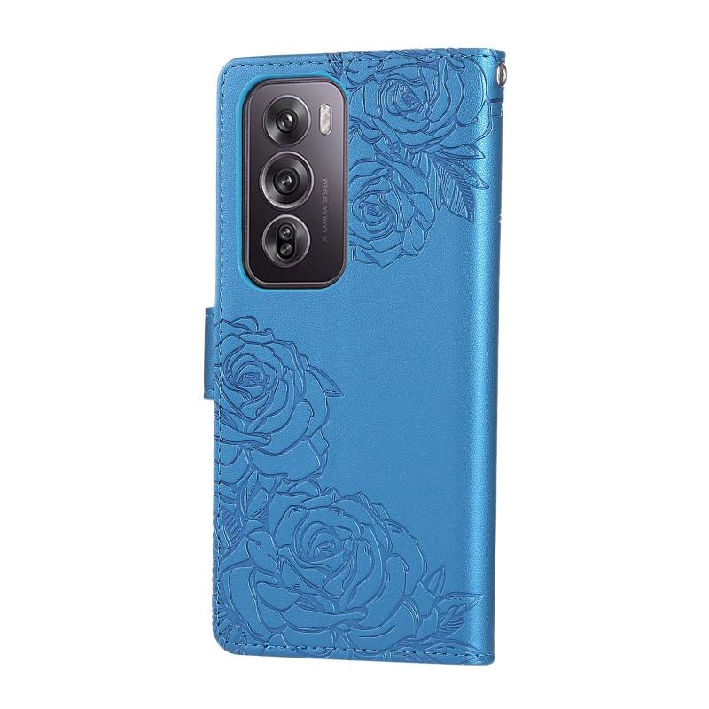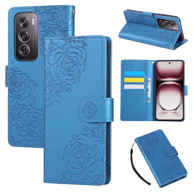 For OPPO Reno12 Pro 5G Global Rose Flower Embossed 3-Card Slots Leather Phone Case(Blue)