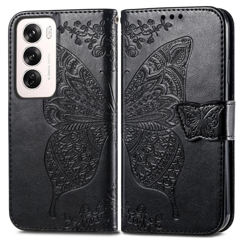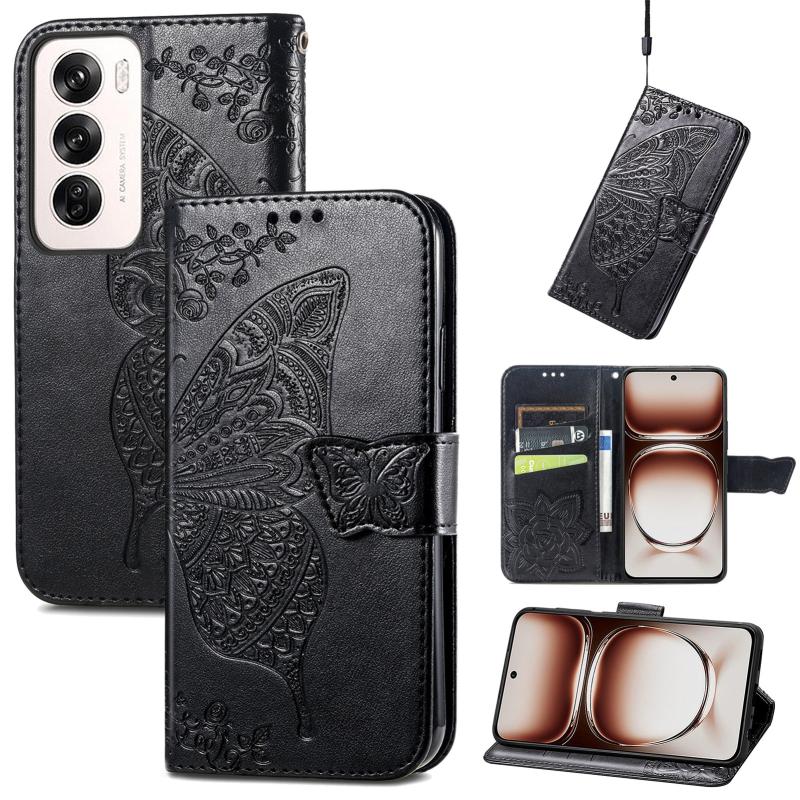 For OPPO Reno12 Pro Global Butterfly Love Flower Embossed Leather Phone Case(Black)