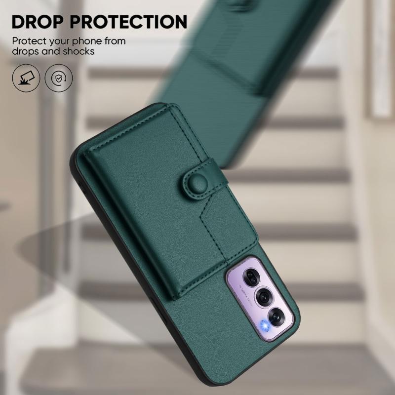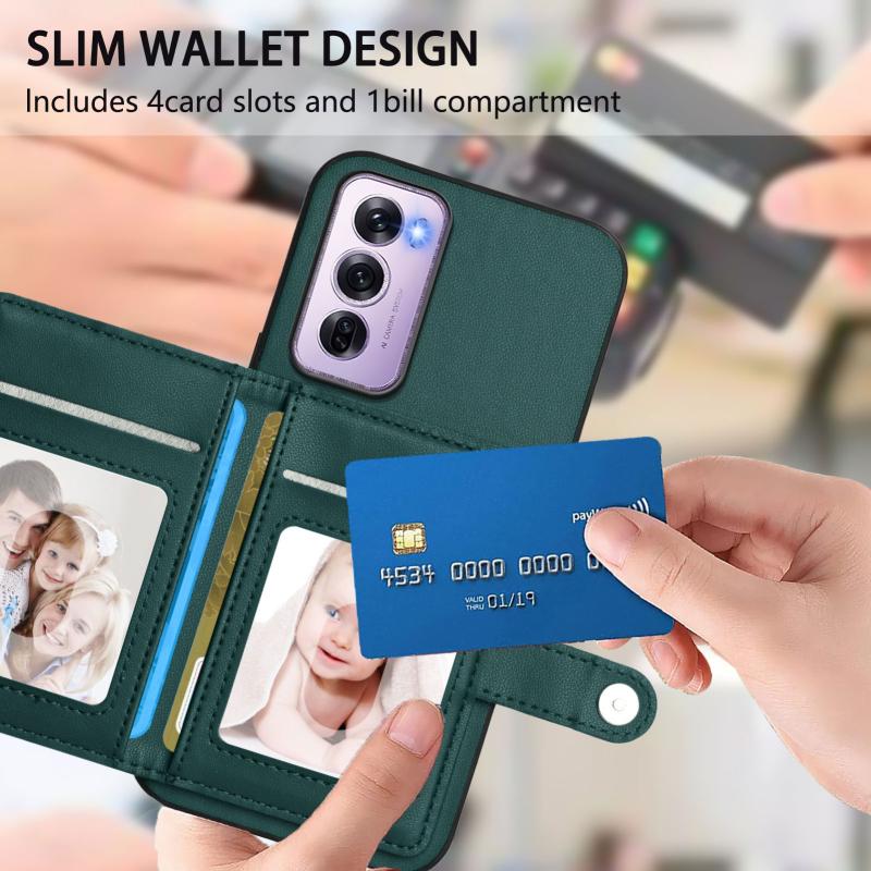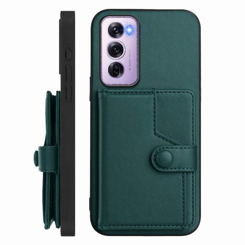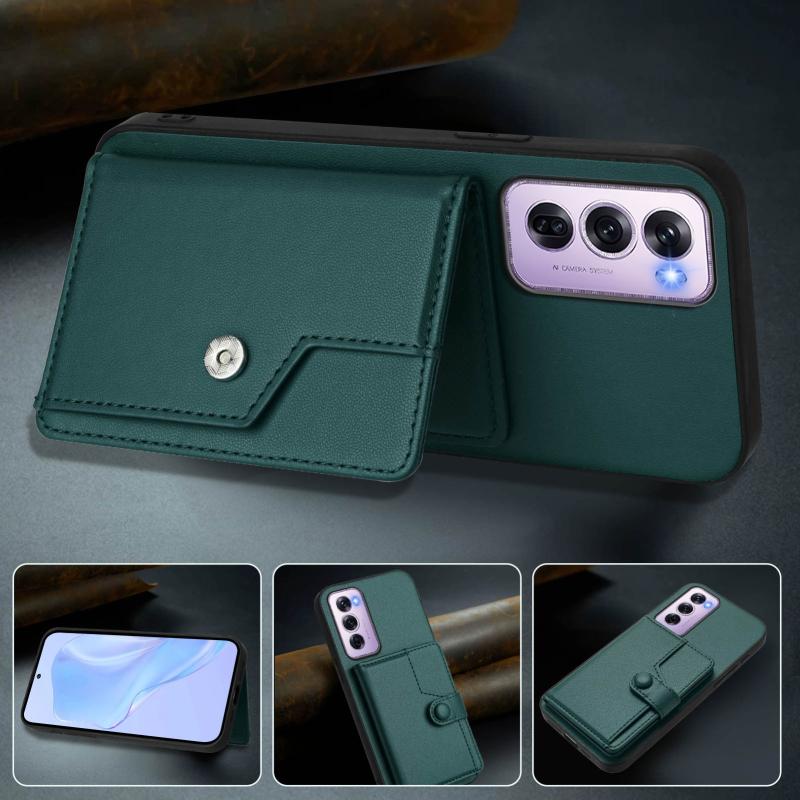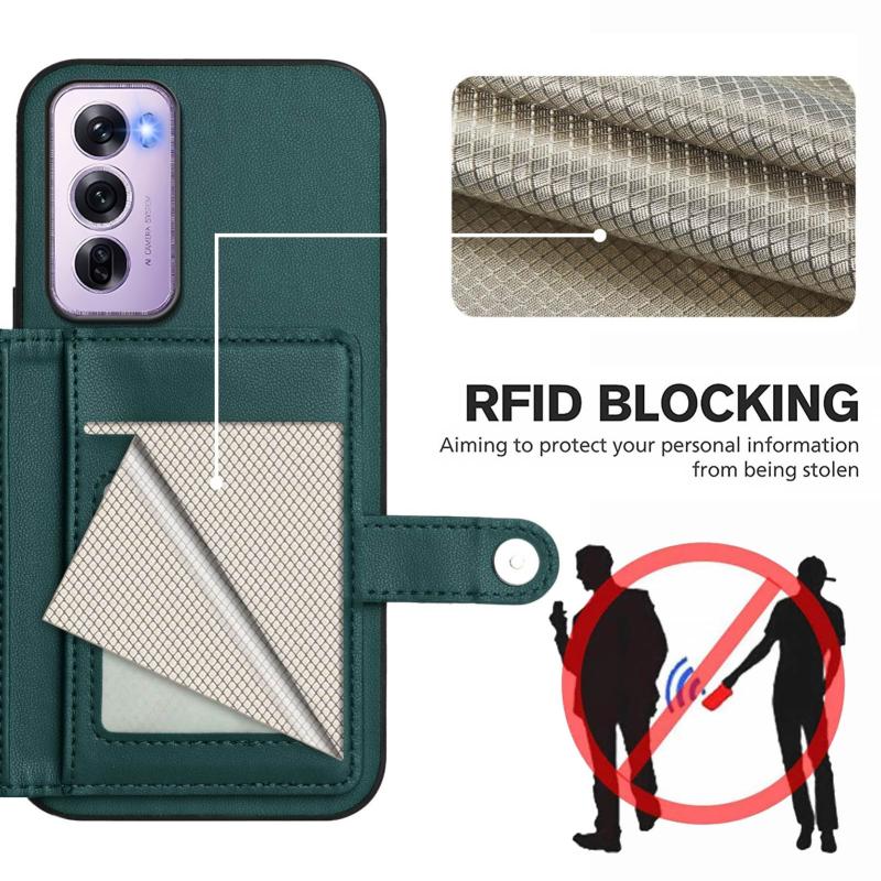For OPPO Reno12 Pro Global Button Card Bag RFID Anti-theft Phone Case(Green)