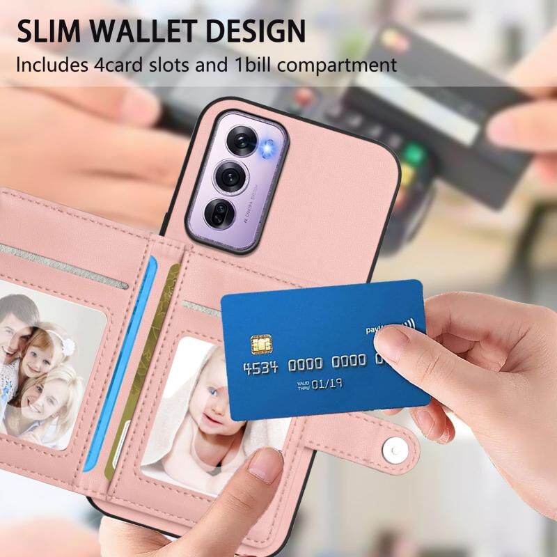 Θήκη κινητού τηλεφώνου με κάρτες και προστασία RFID κατά της κλοπής για OPPO Reno12 Pro Global (Ροζ)