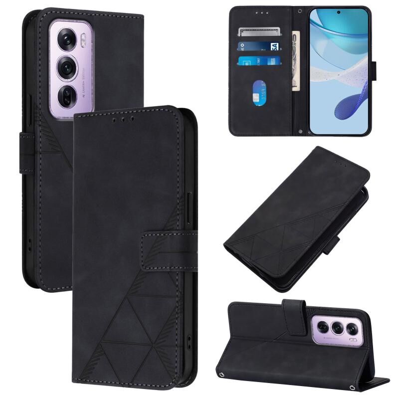 Θήκη τηλεφώνου OPPO Reno12 Pro Global Crossbody 3D ανάγλυφο δερμάτινο flip (Μαύρο)