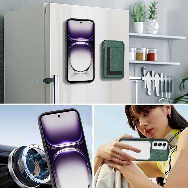 Θήκη τηλεφώνου με αποσπώμενο μαγνητικό κάρτας Magsafe για OPPO Reno12 Pro Global CX01 (Μέντα Πράσινο)
