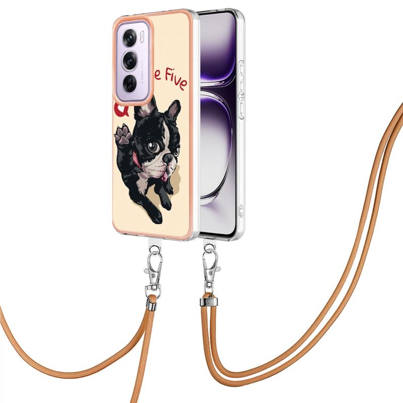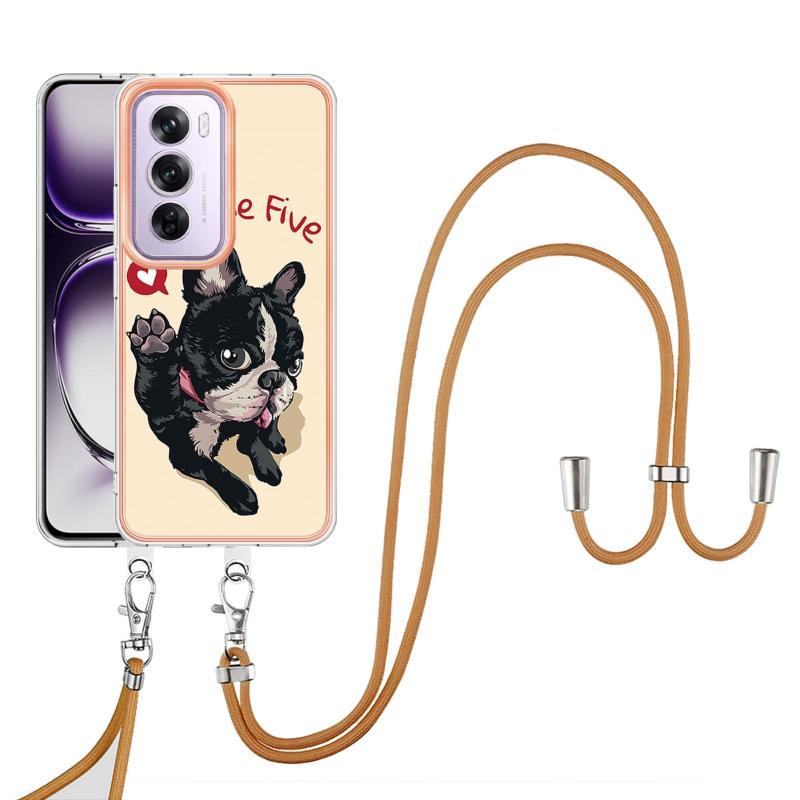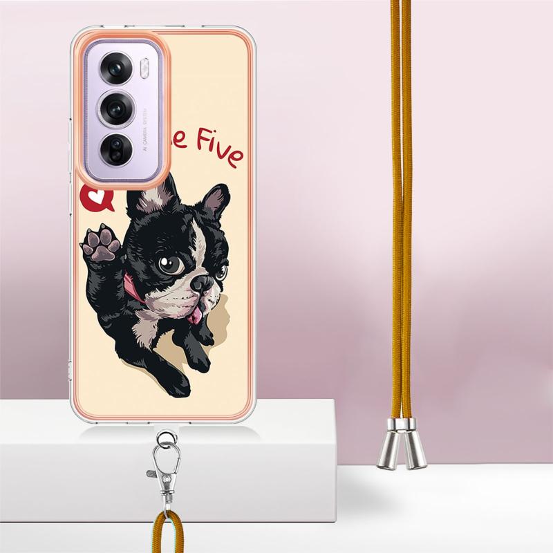 For OPPO Reno12 Pro Global Electroplating Dual-side IMD Phone Case with Lanyard(Lucky Dog)