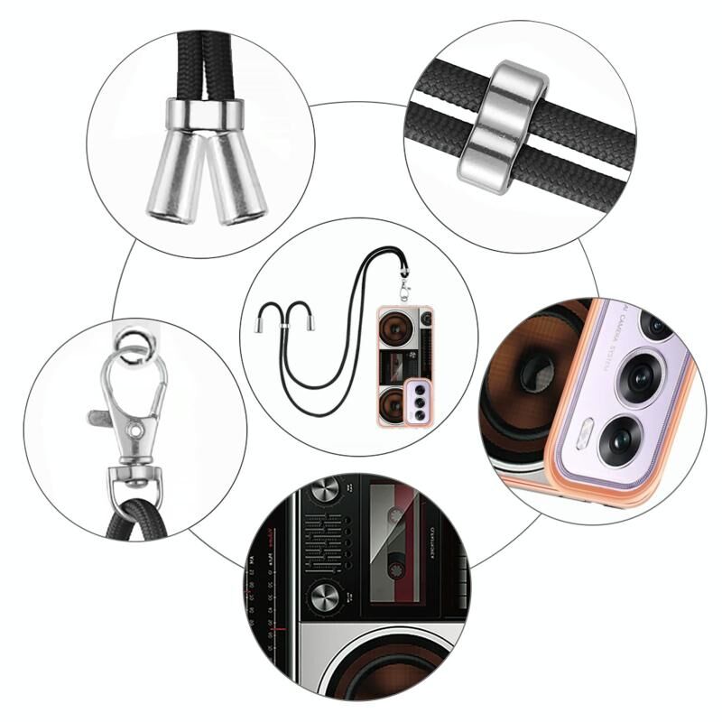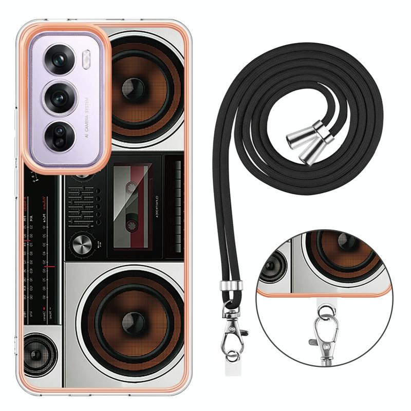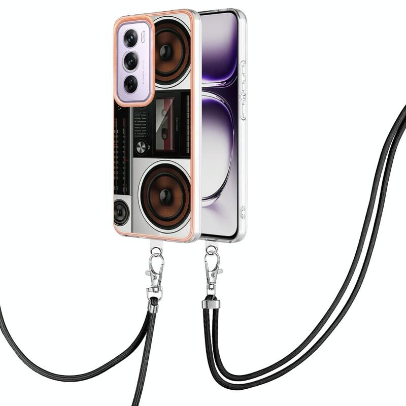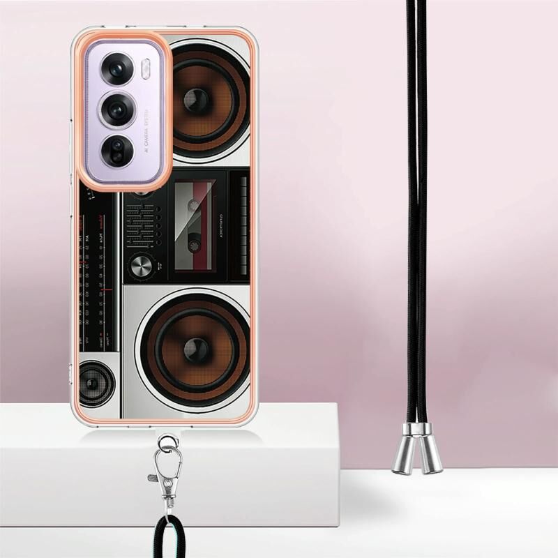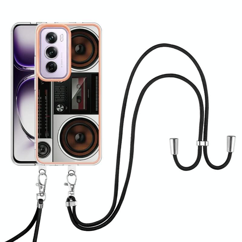 For OPPO Reno12 Pro Global Electroplating Dual-side IMD Phone Case with Lanyard(Retro Radio)