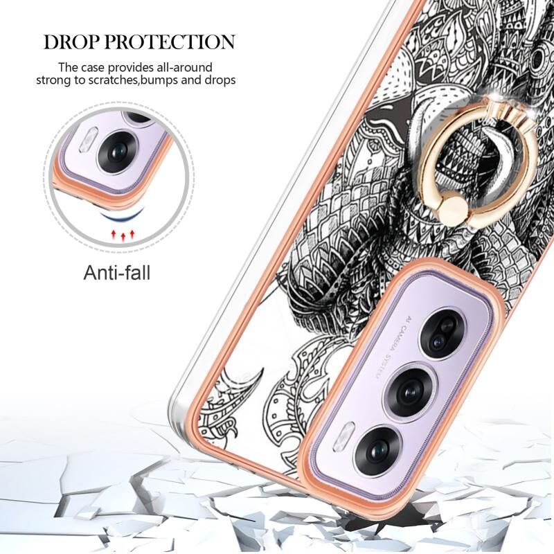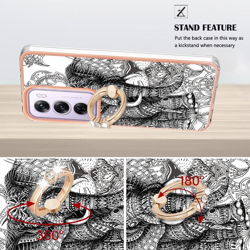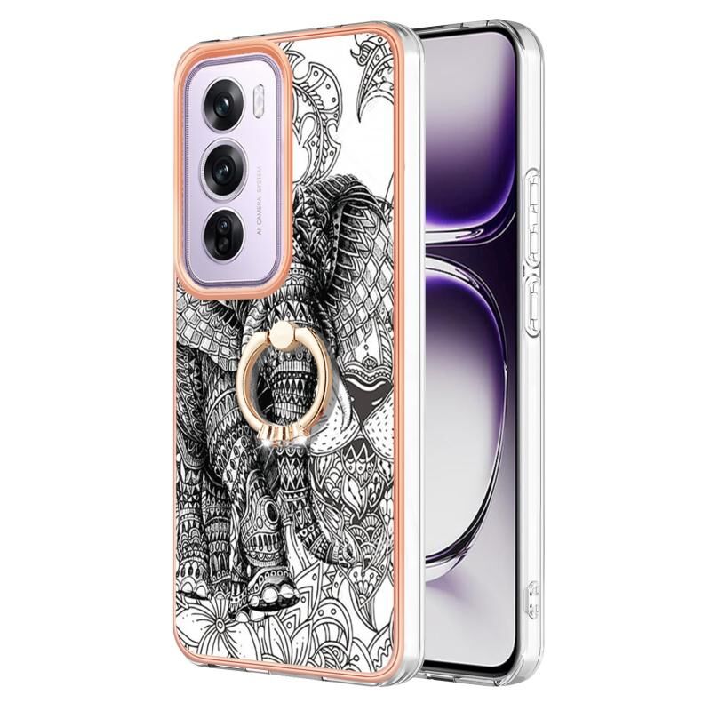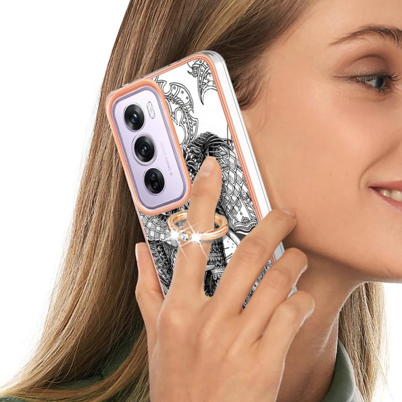 Θήκη τηλεφώνου για OPPO Reno12 Pro Global Electroplating Dual-side IMD με δακτύλιο στήριξης (Totem Elephant)